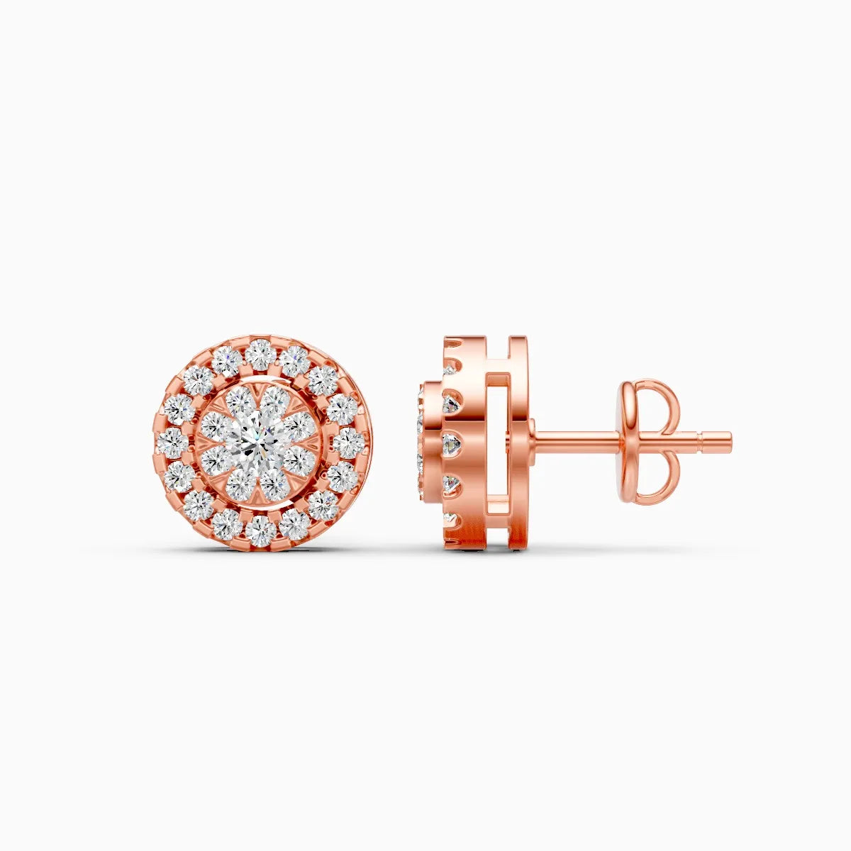 These floral double halo stud earrings bring a soft, glowing sparkle to your everyday style, featuring round lab-grown diamonds arranged in a central bloom framed by two concentric halos for a rich, full look. Set with lab-grown diamonds in solid 9K/14K/18K yellow, white and rose gold, they offer a conflict-free, planet-conscious alternative to mined diamonds while staying skin-friendly and comfortable for long wear. The round silhouette sits neatly on the ear, giving you a polished yet feminine finish that works beautifully for modern women—from daily and office wear to brunches, date nights and family celebrations—making them an easy go-to when you want your studs to feel a little more special.