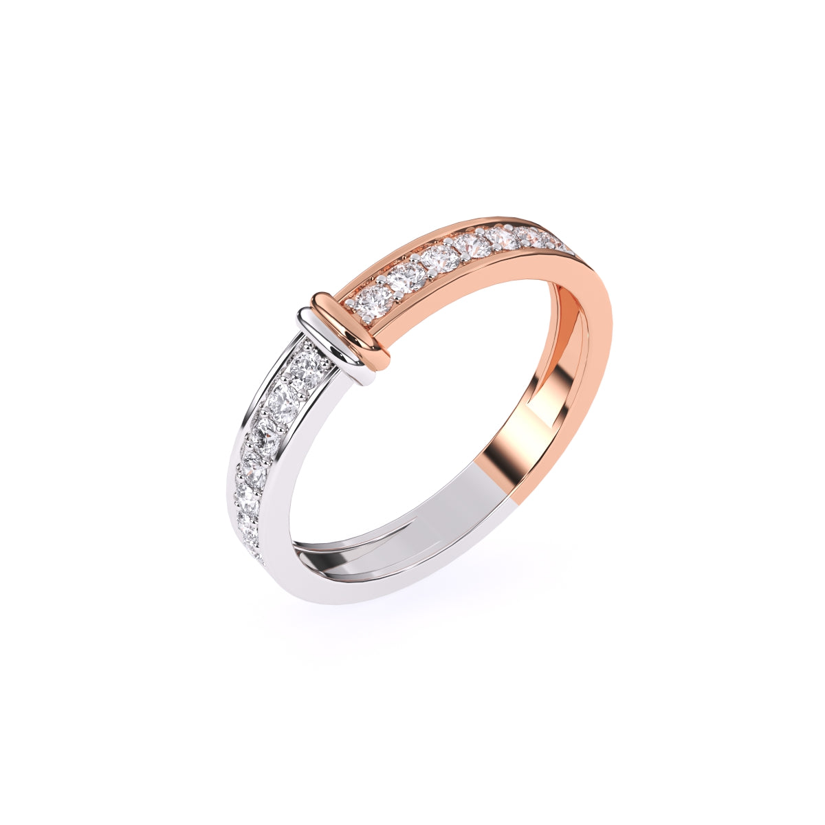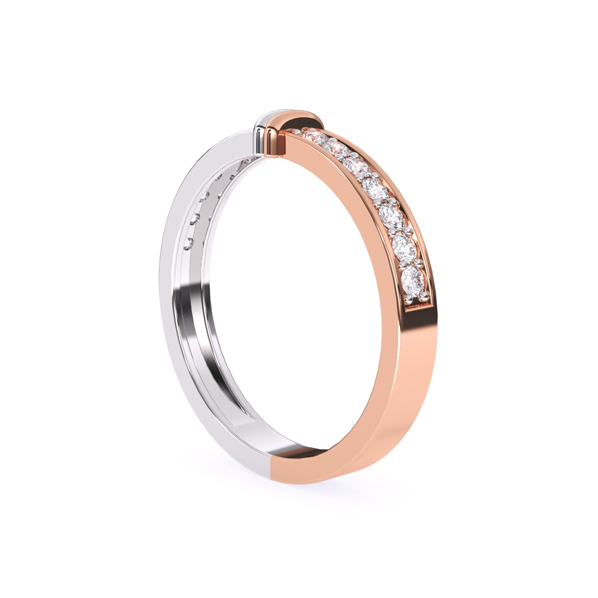 0 StoneHarmonize your style with this unique two-tone ring, featuring a seamless blend of white and rose gold joined by a distinct central link motif. The band is adorned with a continuous row of sparkling round brilliant lab-grown diamonds, elegantly bridging the contrast between the two metals for a truly modern look. Crafted in 9K, 14K, or 18K gold, this versatile piece is perfect for the woman who loves mixed metals, offering a symbolic representation of connection that pairs effortlessly with both silver and gold jewellery.