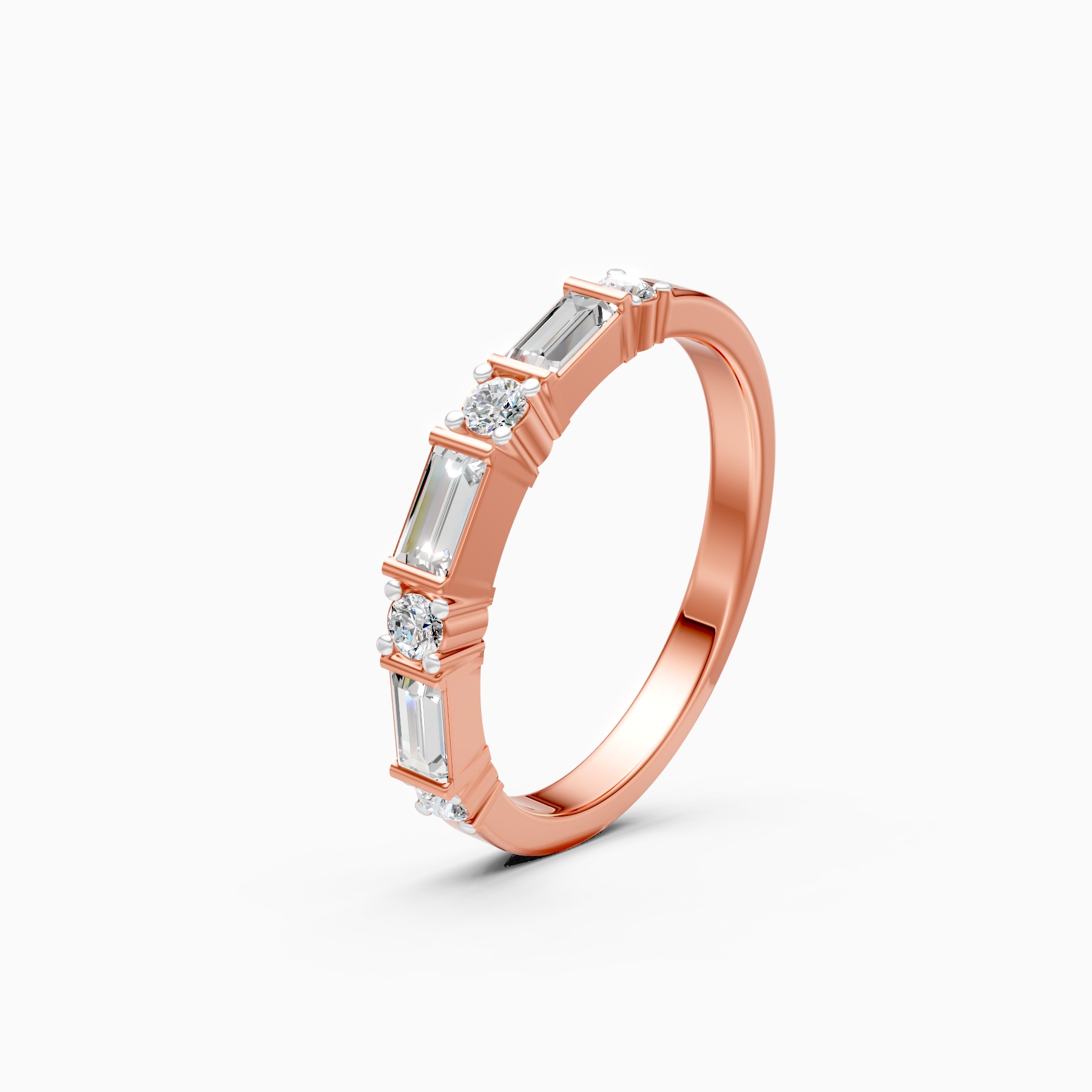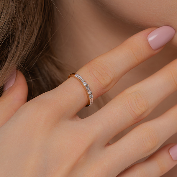 0 StoneThis sophisticated ring creates a mesmerizing rhythm with its alternating sequence of sleek baguette-cut diamonds and shimmering round brilliants. The geometric contrast between the linear step-cut bars and the circular sparkles offers a modern, Art Deco-inspired aesthetic that catches the light from every angle. Expertly crafted in 9K, 14K, or 18K yellow, white, or rose gold with sustainable lab-grown diamonds, this versatile band is designed to be cherished. It serves perfectly as a unique wedding band, a stylish anniversary gift, or a textured addition to a curated daily stack for the modern woman.