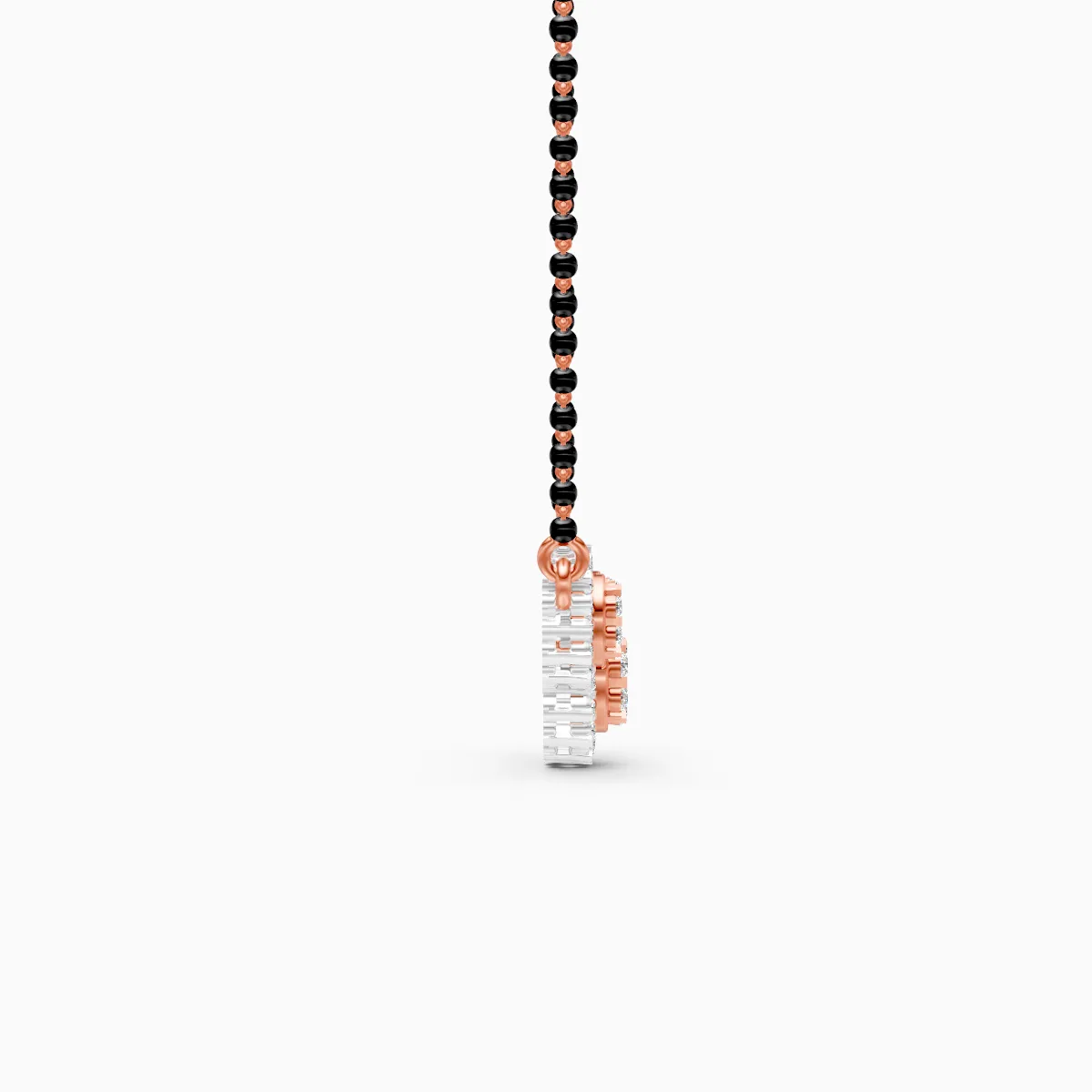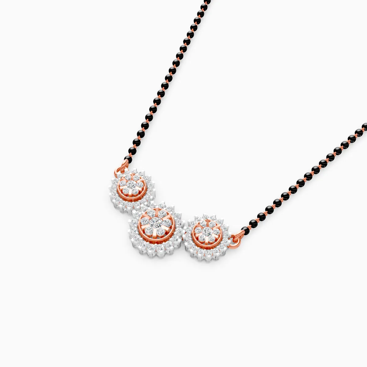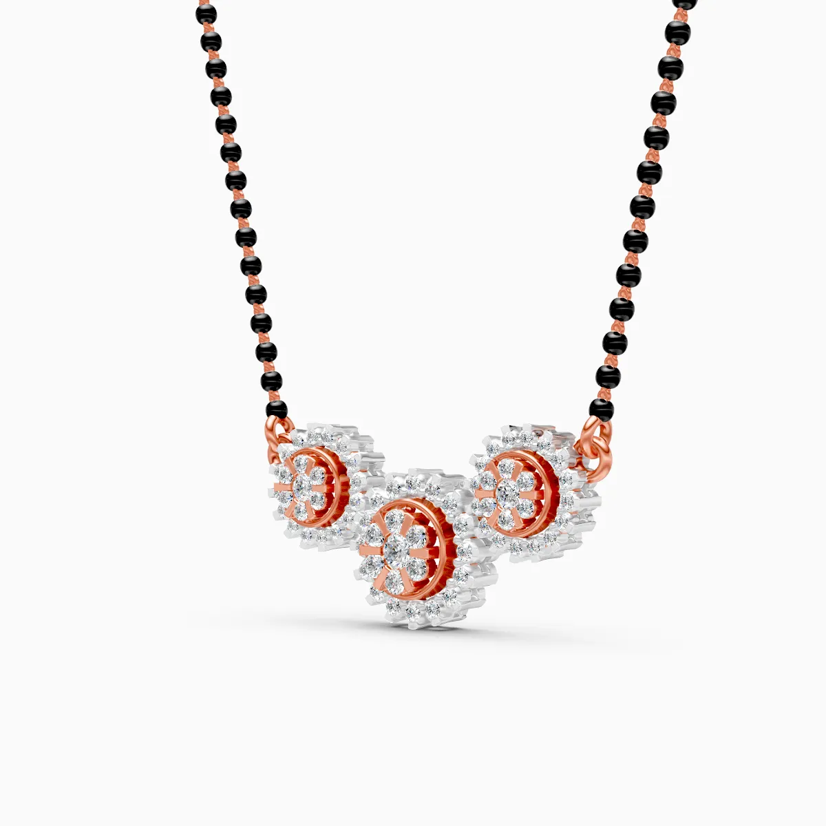 1 StoneReimagine tradition with this enchanting mangalsutra, designed for the modern woman who cherishes meaningful elegance. The pendant features three interconnected floral motifs, each set with a brilliant center lab-grown diamond surrounded by a halo of smaller sparkling stones, creating a blooming trio that symbolizes past, present, and future. Crafted in your choice of solid 9K, 14K, or 18K yellow, white, or rose gold, this design sits flat against the neckline, ensuring it remains lightweight and comfortable for everyday wear. As a conflict-free and planet-conscious alternative to mined diamonds, this piece seamlessly blends cultural heritage with contemporary ethics, making it perfect for styling with both office wear and ethnic festive outfits.