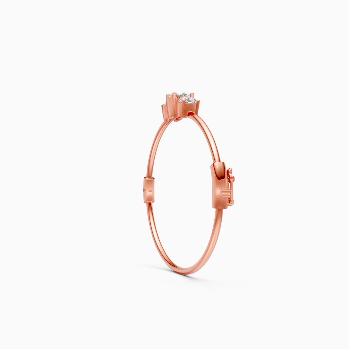 0 StoneA modern take on the classic three-stone story, this trio solitaire bangle features three round lab grown diamonds set in sleek prongs on a slim, oval bracelet that hugs the wrist with effortless ease. Crafted in solid 9K/14K/18K yellow, white or rose gold, the open, minimal frame keeps the focus on the brilliant round centres while remaining lightweight and comfortable enough for all-day wear. Designed for modern women who love clean lines with high-impact sparkle, it moves smoothly from office hours to cocktails, festive celebrations and wedding functions, worn solo as a statement or stacked with other bangles for a richer wrist. Made with conflict-free, planet-conscious lab grown diamonds, it’s a refined choice for everyday luxury.
