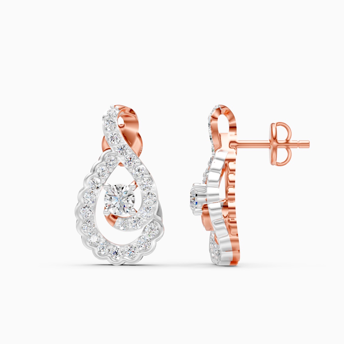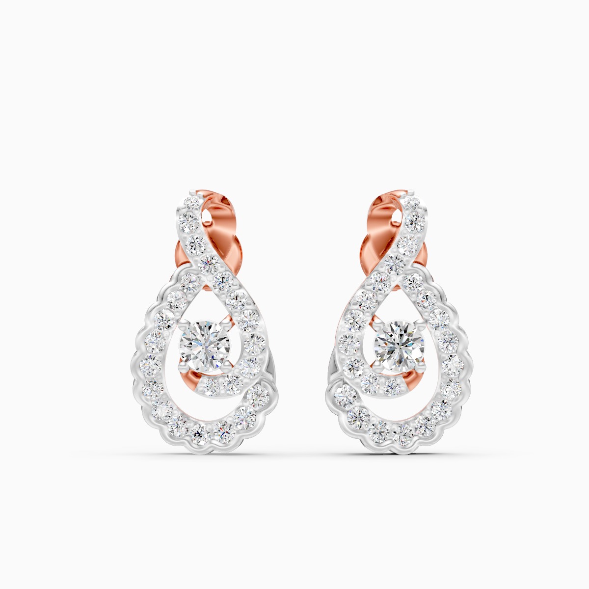 0 StoneThese scalloped teardrop diamond studs feature an elegant looped silhouette with a central round lab-grown diamond framed by a double row of pavé-set stones and soft scalloped detailing, crafted in solid 9K/14K/18K yellow, white and rose gold. Designed for modern women who love feminine sparkle in a compact form, the earrings sit neatly on the ear with a secure screw-back, staying comfortable and skin-friendly through long workdays, brunch catchups and evening celebrations. Conflict-free, planet-conscious lab-grown diamonds and the refined two-tone curves make these studs a versatile pair that can easily become her everyday go-to for a polished, graceful look.