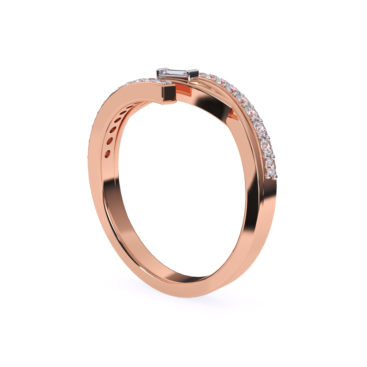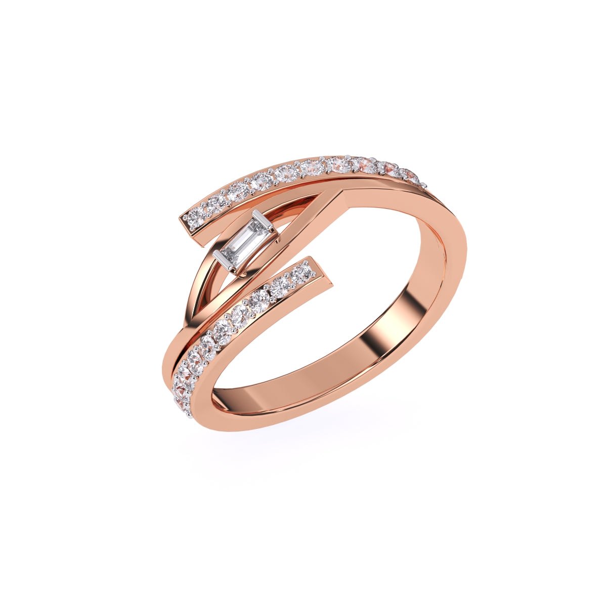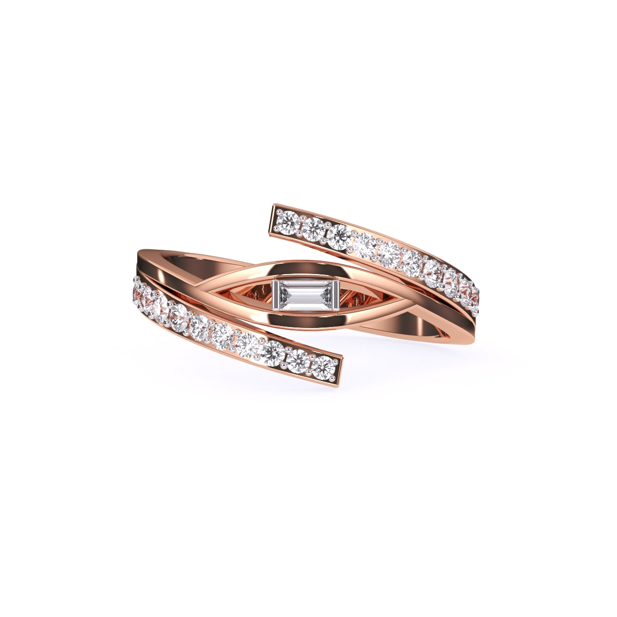 0 StoneCapture the essence of modern movement with this artistic bypass ring, where two sweeping bands of round brilliant lab-grown diamonds gently wrap around the finger. At the heart of this fluid design sits a solitary baguette-cut diamond, appearing to float effortlessly within the negative space for a striking focal point. Expertly crafted in 9K, 14K, or 18K yellow, white, and rose gold, this sculptural piece balances kinetic energy with refined elegance. It is the perfect choice for the woman who views jewellery as wearable art, offering a sophisticated, conflict-free sparkle that transitions smoothly from day to night.