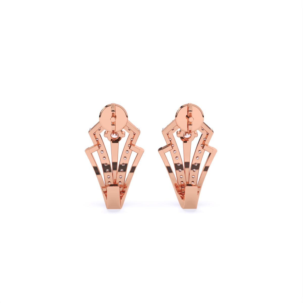 0 StoneThese round Art Deco hoop earrings feature layered fan-like lines of shimmering lab grown diamonds that frame a central round cluster, creating a modern, structured silhouette with just the right amount of sparkle. Expertly crafted in solid 9K/14K/18K yellow, white or rose gold, the hoops sit close to the ear with a secure screw-back for all-day comfort, making them perfect for office wear, festive evenings and special celebrations. The geometric lines feel contemporary yet timeless, while conflict-free, planet-conscious lab grown diamonds offer a refined alternative to mined stones for modern women who want statement style with mindful luxury.