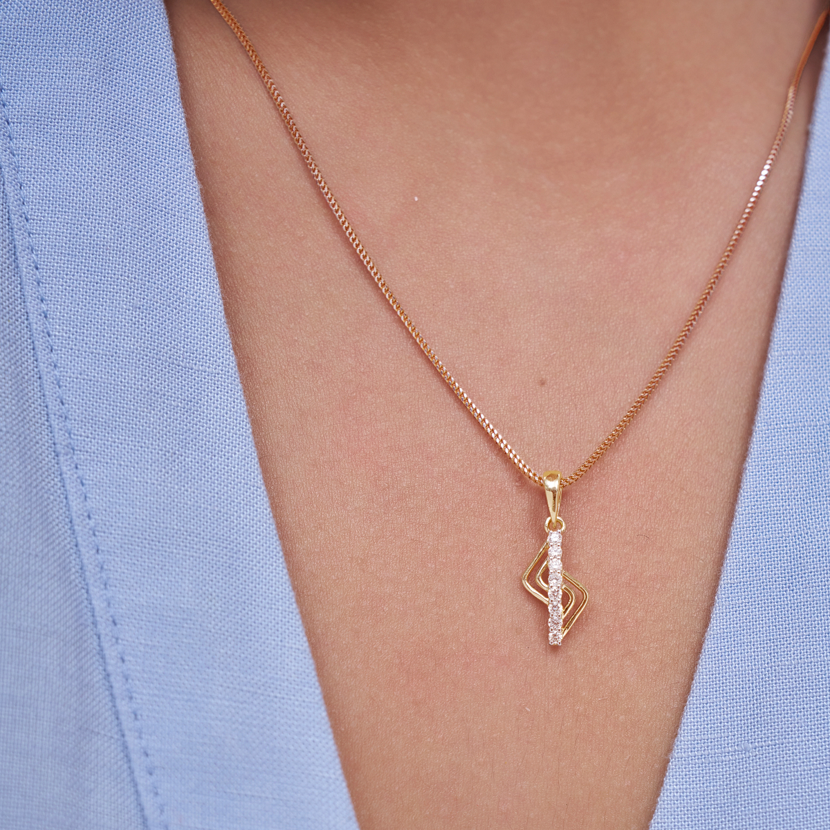 0 StoneThis elegant geometric wave pendant is crafted for modern women who love subtle sparkle with a contemporary edge, featuring a vertical line of round lab-grown diamonds paired with fluid, sculpted gold curves. Set with lab-grown diamonds in solid 9K/14K/18K yellow, white or rose gold, the design feels minimal yet distinctive, offering a refined play of structure and movement. Lightweight and comfortable on the skin, it sits beautifully at the neckline, making it ideal for everyday wear, office styling, brunches, or effortless date-night looks. A conscious, conflict-free alternative to mined diamonds, this pendant blends modern design with responsible luxury, perfect for women who want an everyday signature piece that transitions seamlessly from desk to dinner.