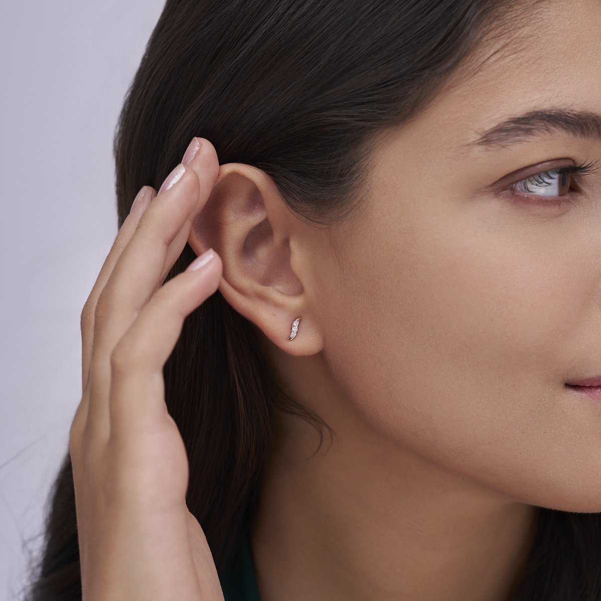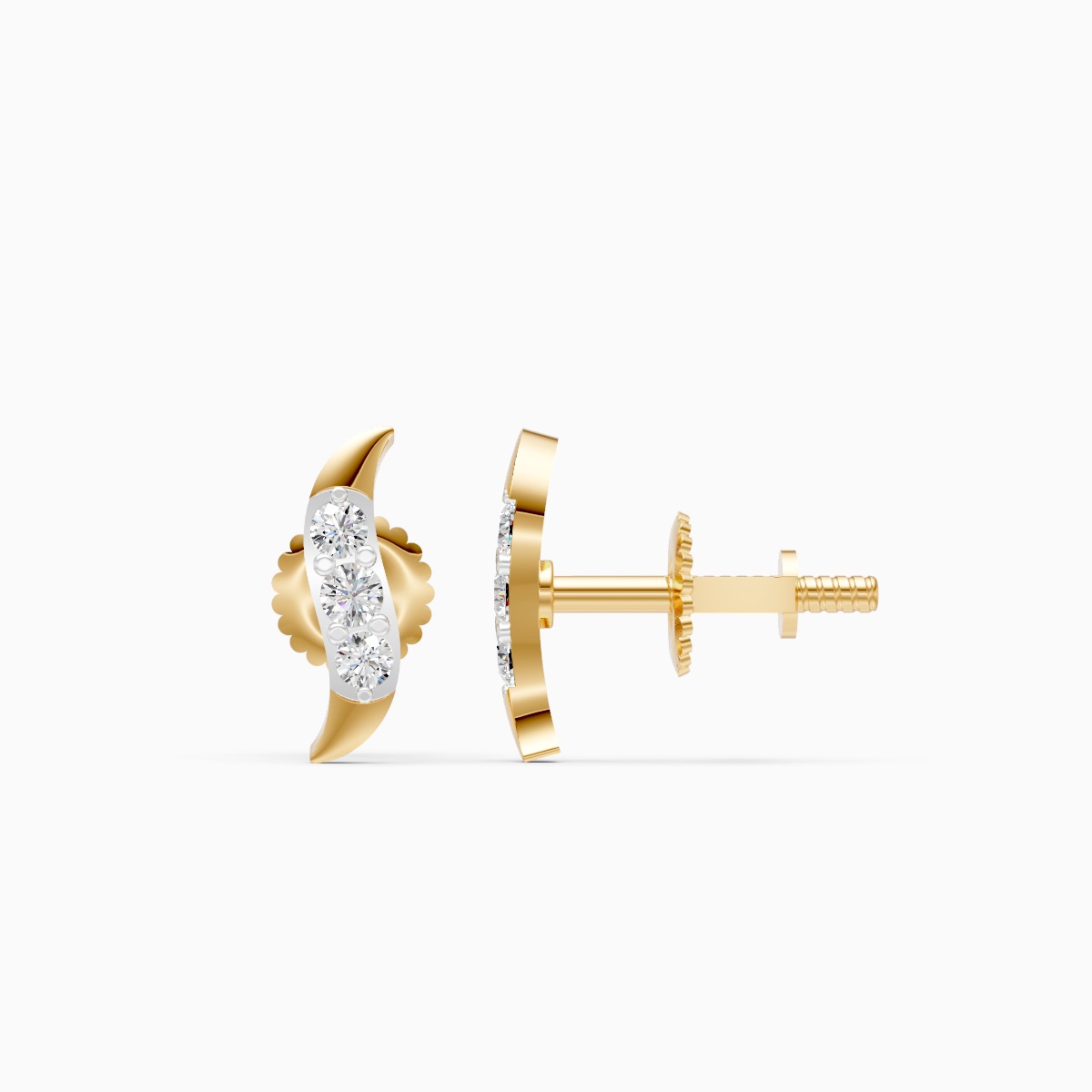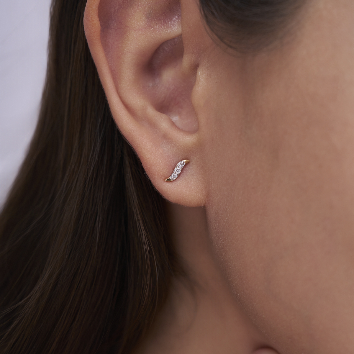 0 StoneThese refined crescent-shaped stud earrings feature and round lab-grown diamonds arranged in a gentle wave that softly follows the curve of the ear, creating a modern yet elegant silhouette. Set with lab-grown diamonds in solid 9K/14K/18K yellow, white or rose gold, this design blends minimal sparkle with everyday comfort, making it ideal for modern women who prefer subtle statement pieces. Lightweight, skin-friendly and thoughtfully proportioned, these studs sit comfortably on the ear and transition effortlessly from office wear to brunches, date nights and understated evening looks. Crafted with conflict-free, planet-conscious lab-grown diamonds, they are a modern alternative to mined diamonds and a timeless addition to a conscious daily jewellery wardrobe.
