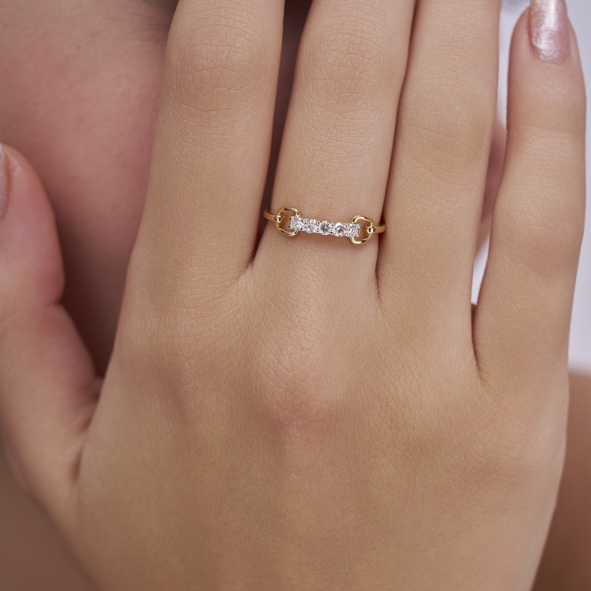 0 StoneThis elegant diamond chain bar ring features a row of round lab-grown diamonds set in a sleek bar-style centre, connected by soft chain-inspired links that add a modern yet fluid character to the design. Crafted for modern women, it is set with lab-grown diamonds in solid 9K/14K/18K yellow, white or rose gold, offering a refined balance of sparkle and comfort. The slim profile sits smoothly on the finger, making it lightweight, skin-friendly and easy to wear all day. Conflict-free and planet-conscious, this ring is a contemporary alternative to mined diamonds and fits effortlessly into her everyday lifestyle—from office hours and casual brunches to understated date nights and special moments.