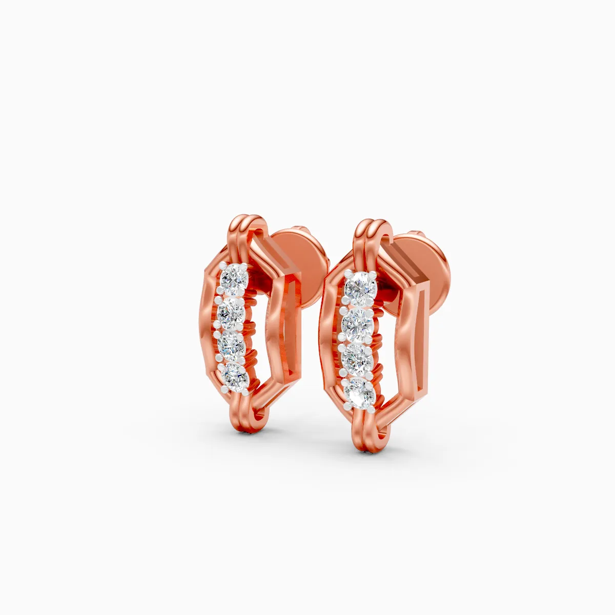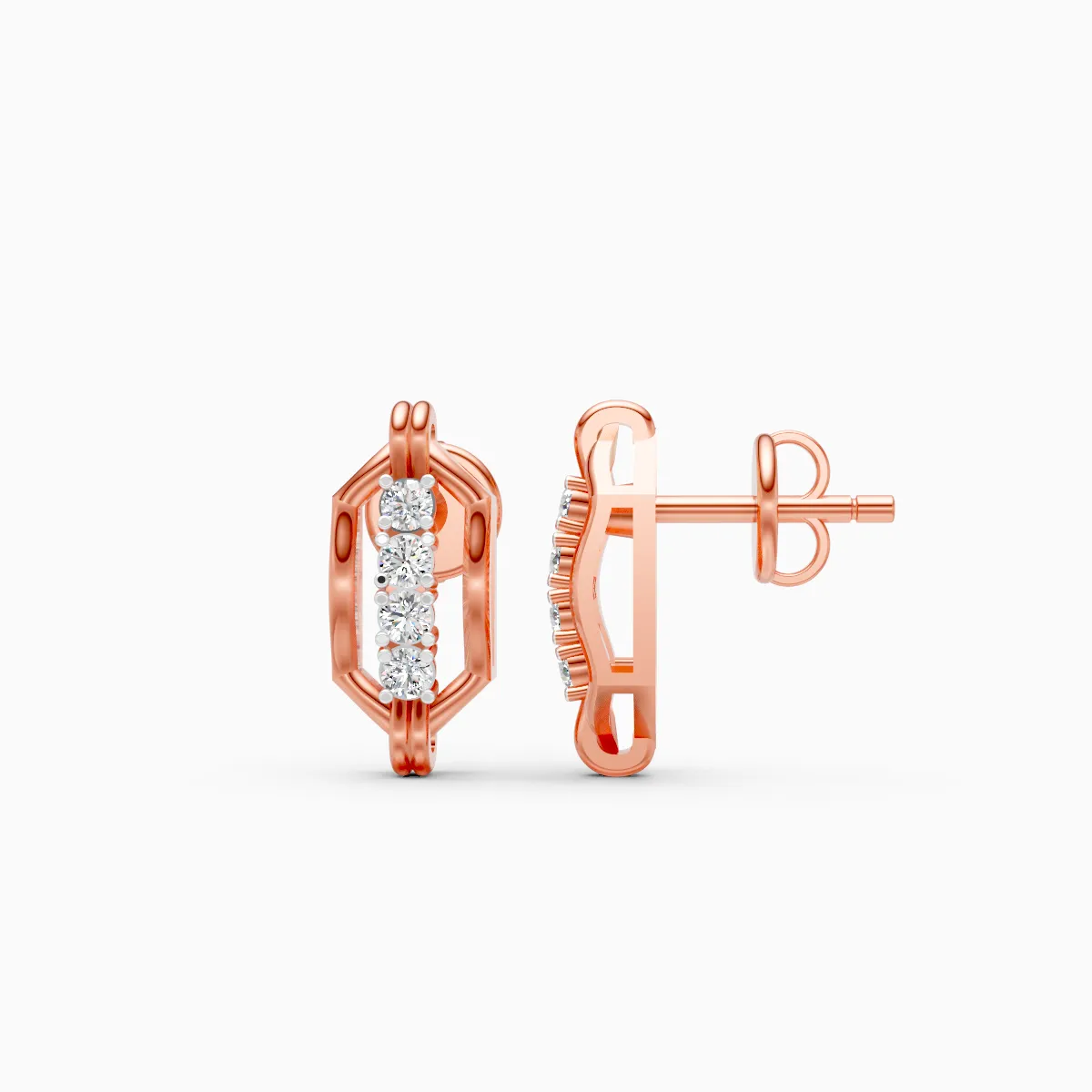 0 StoneThese modern stud earrings feature a sleek geometric frame design highlighted with a vertical line of round lab-grown diamonds, creating a refined balance of structure and sparkle. Set with round lab-grown diamonds in 9K/14K/18K yellow, white and rose gold, they reflect a minimal yet architectural aesthetic that feels contemporary and timeless. Lightweight and comfortable on the ear, these studs sit flat and secure, making them ideal for modern women who prefer effortless elegance through the day. A conscious, conflict-free alternative to mined diamonds, this design transitions seamlessly from office wear to brunches, date nights and understated special occasions, becoming an everyday signature for women who love clean lines and subtle shine.