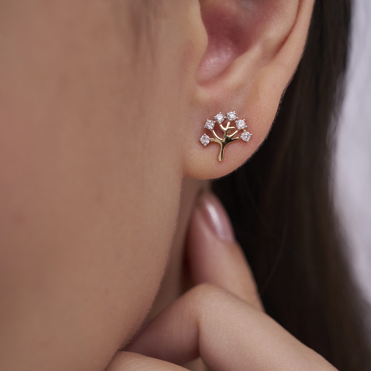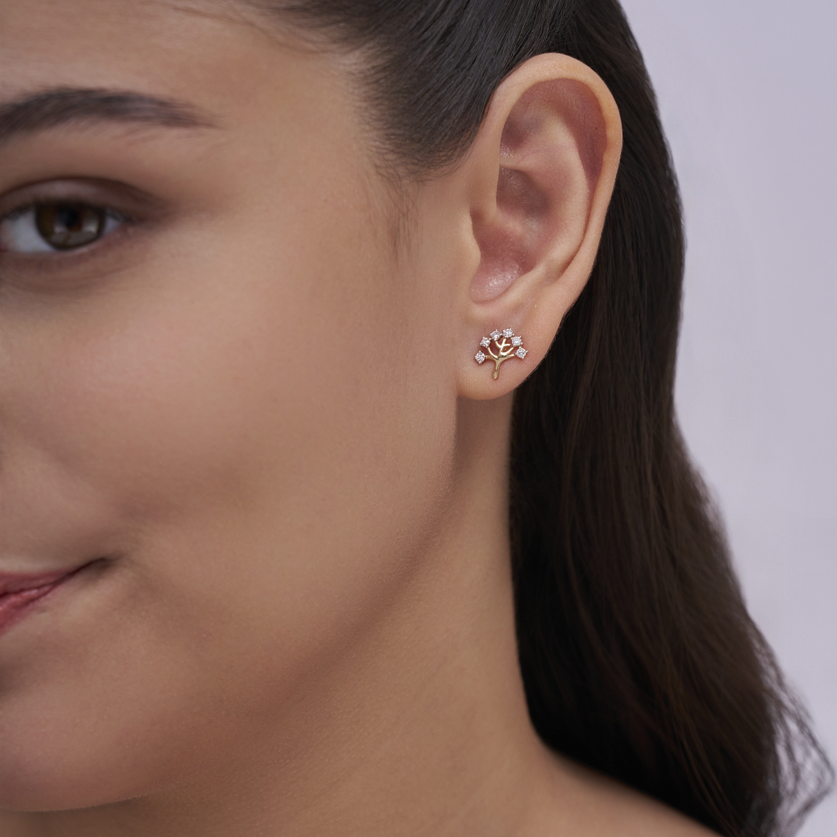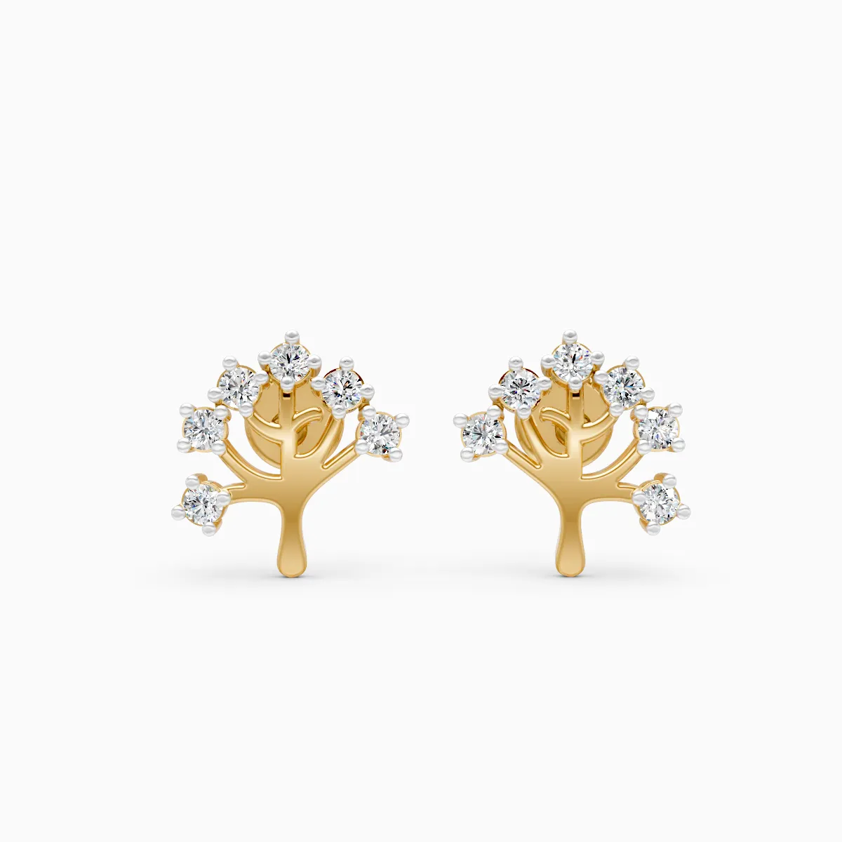 0 StoneThese elegant tree-inspired stud earrings are designed with round lab-grown diamonds arranged like delicate blossoms, symbolising growth, balance, and natural beauty. Set with lab-grown diamonds in 9K, 14K, or 18K yellow, white, or rose gold, the design feels modern yet meaningful, blending minimal form with soft sparkle. Lightweight and skin-friendly, these studs sit comfortably on the ears, making them ideal for everyday wear, office styling, brunch dates, or subtle festive moments. Crafted for modern women who appreciate conscious luxury, they offer a refined way to wear diamonds daily while choosing a conflict-free, planet-conscious alternative to mined stones.