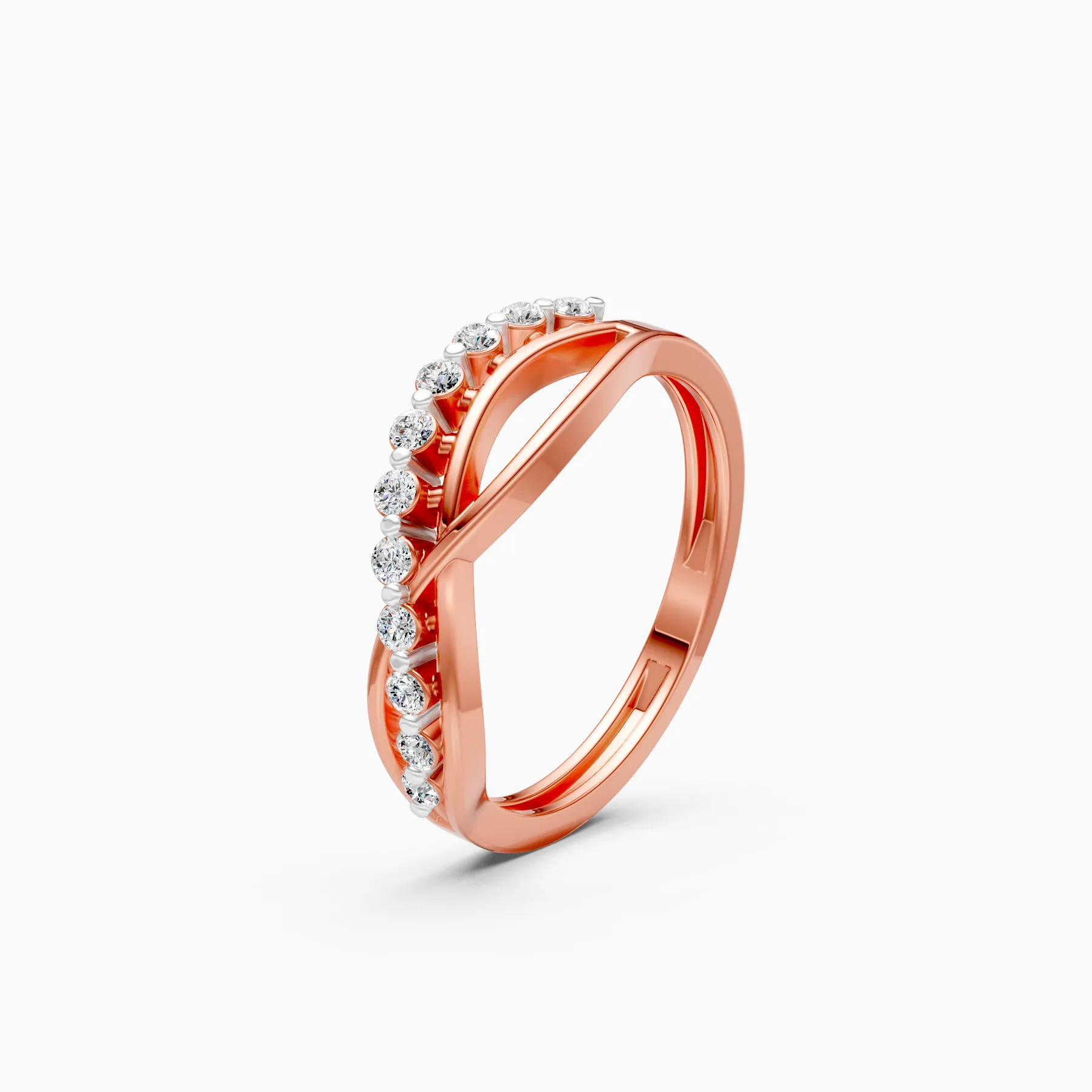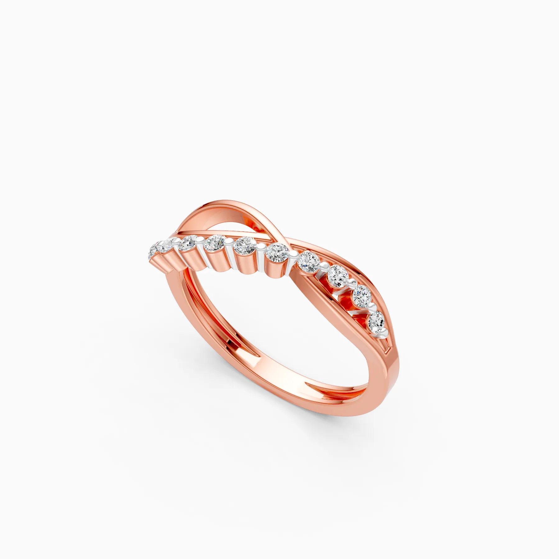 0 StoneA modern twist on a classic band, this crossover infinity ring is set with a line of round lab-grown diamonds that seem to float across sculpted gold curves. Crafted in solid 9K/14K/18K yellow, white and rose gold, the low-profile design hugs the finger comfortably, making it perfect for daily wear, office hours and effortless evenings out. The sleek criss-cross silhouette adds subtle movement and shine, while the conflict-free, planet-conscious lab-grown diamonds bring a refined sparkle that modern women can feel good about wearing every day.