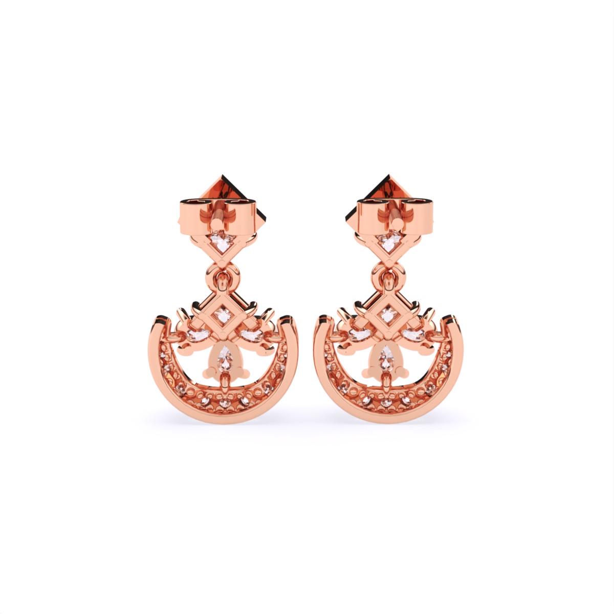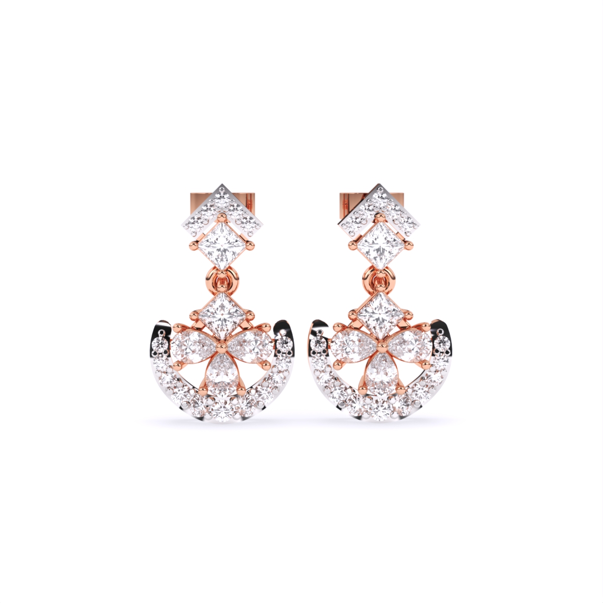 0 StoneThese floral crescent drop earrings bring together princess-cut, pear and round lab-grown diamonds in a graceful rose-gold arc that feels luxe yet wearable. Set with conflict-free lab-grown diamonds and crafted in solid 9K/14K/18K yellow, white and rose gold, the design frames a petal-like cluster inside a sparkling half-moon for a refined, feminine look. The delicate drops sit close to the ear with a secure, comfortable fit, making them perfect for modern women who want something elegant for sangeet nights, celebrations, cocktails or dressy dinners without feeling too heavy. A conscious alternative to mined diamonds, they add high-shine brilliance while staying true to your minimal, planet-aware luxury values.