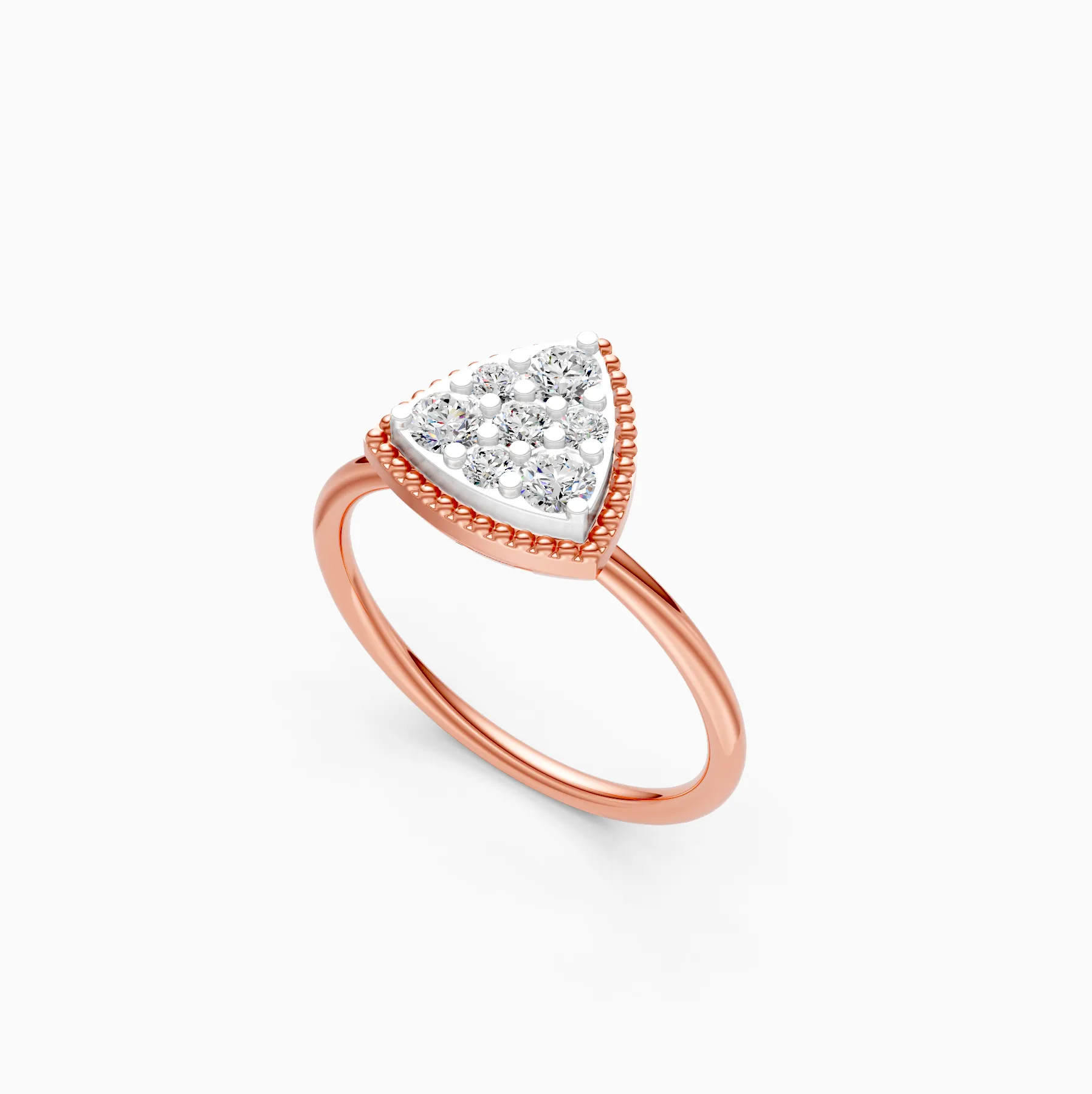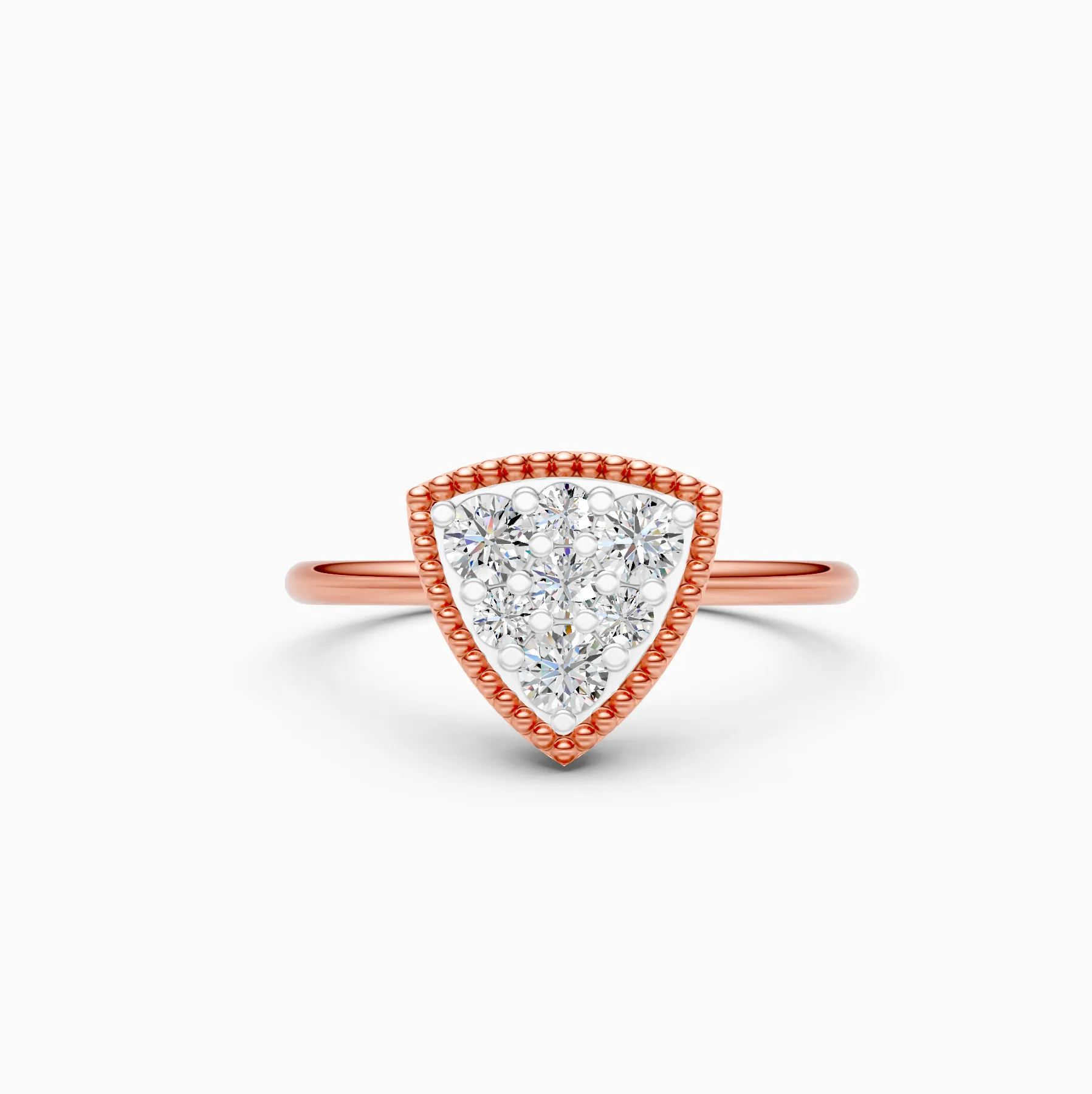 0 StoneA sleek twist on everyday sparkle, this triangle cluster ring features round lab-grown diamonds set in a modern geometric silhouette with a refined milgrain edge for extra texture and light play. Crafted in solid gold and available in 9K/14K/18K yellow, white and rose gold, it’s skin-friendly, anti-tarnish and designed to sit comfortably on the finger—easy to wear from busy office days to brunch plans and date nights. A conscious alternative to mined stones, these lab-grown diamonds are conflict-free and planet-conscious, making it a modern luxury choice for women who love minimal, distinctive details and a signature piece that styles effortlessly with stacks or stands beautifully on its own.
