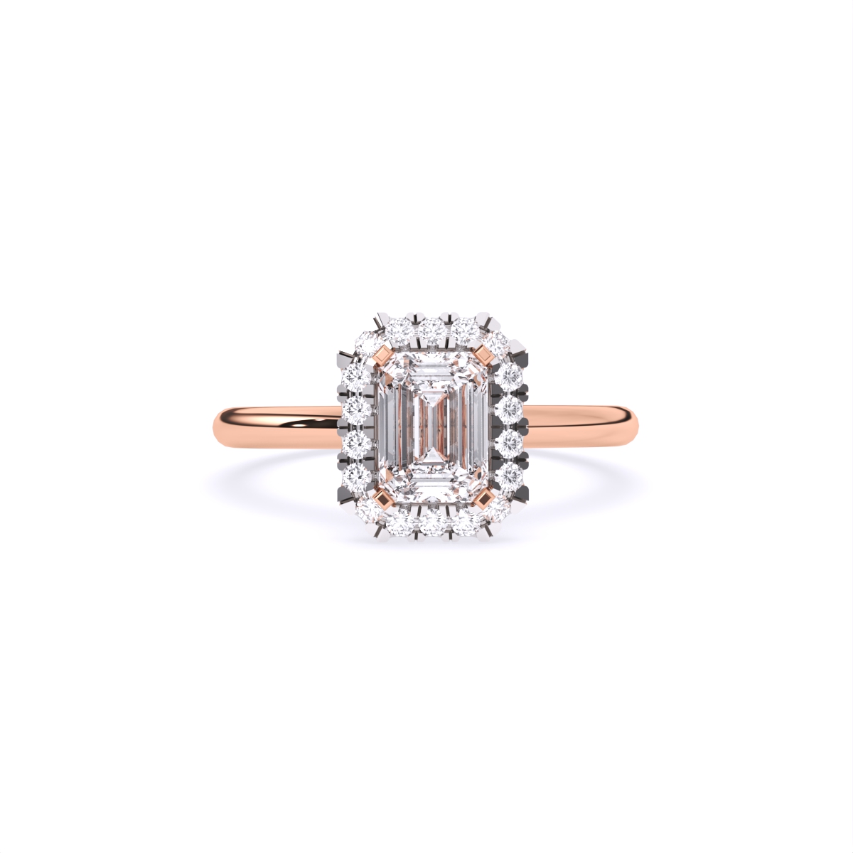 0 StoneA modern classic, this emerald halo solitaire ring features a sleek emerald-cut lab grown diamond framed by a delicate halo of round lab grown diamonds on a slim, polished band. Crafted in solid 9K/14K/18K yellow, white and rose gold, it offers a refined sparkle that feels luxe yet effortlessly wearable every day. The elongated emerald centre stone creates a flattering, finger-lengthening silhouette, while the micro halo adds just the right amount of brilliance for office wear, brunch plans or a special date night. Lightweight, hypoallergenic and comfortable for all-day wear, this conscious, conflict-free lab grown diamond ring is designed for modern women who love clean lines, understated glamour and timeless style.