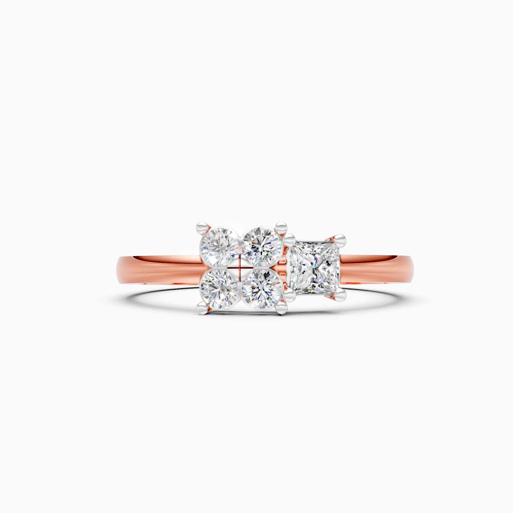 0 StoneMake a modern statement with this architecturally inspired ring, featuring a striking asymmetric interplay of shapes. The design pairs a geometric cluster of brilliant round lab-grown diamonds with the sharp, clean lines of a princess-cut diamond, set in your choice of 9K, 14K, or 18K yellow, white, or rose gold. Perfect for the woman who seeks a unique twist on classic sparkle, this conflict-free piece offers a sophisticated, contemporary vibe that transitions seamlessly from a creative office environment to evening cocktails. Its smooth, polished band ensures a comfortable, skin-friendly fit, making it an ideal signature piece for everyday wear.