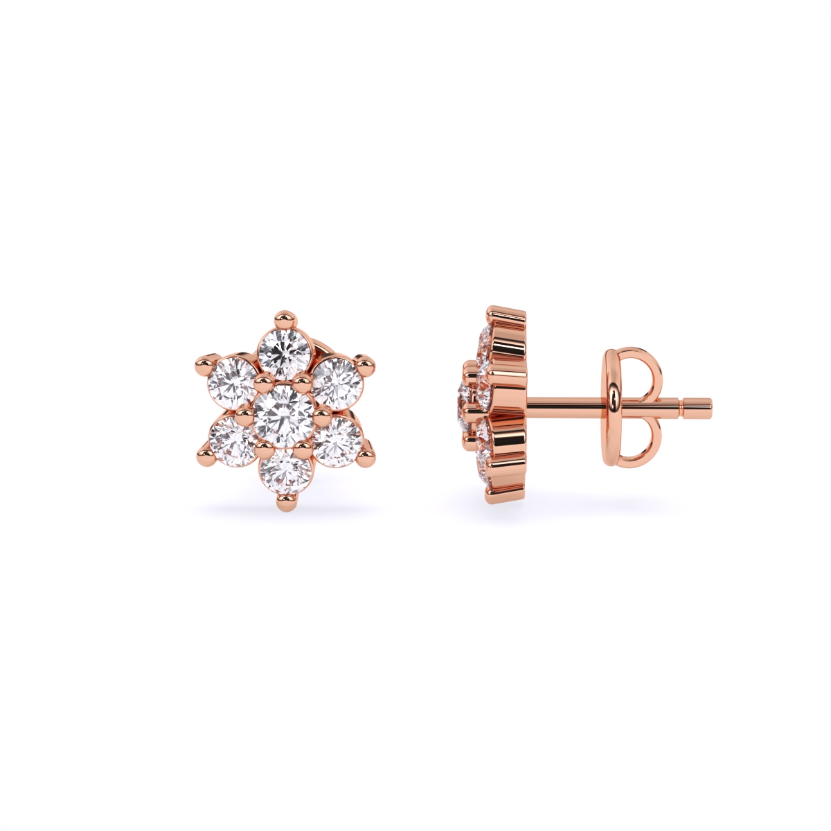 0 StoneA delicate take on the classic cluster, these round floral stud earrings are crafted in solid 9K/14K/18K yellow, white and rose gold and set with sparkling lab-grown diamonds arranged like tiny six-petalled blooms around a bright centre stone. Lightweight yet luminous, they sit snugly on the ear for all-day comfort, making them perfect for modern women who want an everyday pair that moves effortlessly from office wear and Zoom calls to brunches, family gatherings and date nights. The conflict-free, planet-conscious lab-grown diamonds offer brilliant sparkle with a feel-good story, turning these studs into an easy signature you’ll reach for again and again.