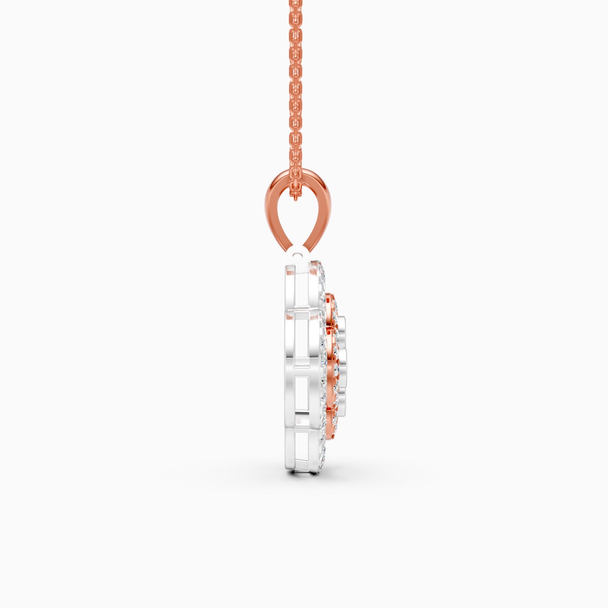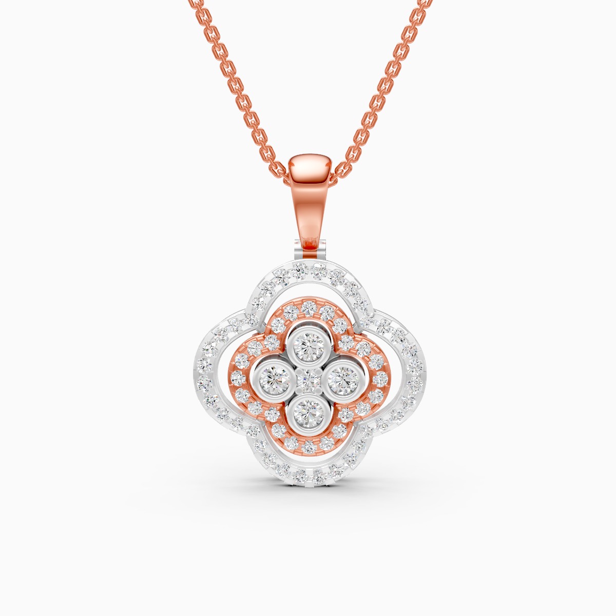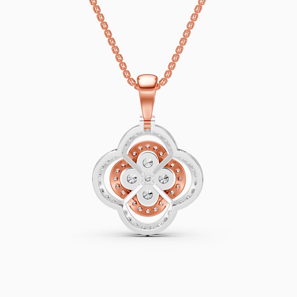 0 StoneFloral medallion diamond pendant showcases a beautifully layered clover-inspired design crafted in solid 9K/14K/18K yellow, white and rose gold. Set with an array of sparkling round lab-grown diamonds arranged across multiple concentric floral frames, the piece creates a rich, dimensional brilliance while remaining lightweight and comfortable for daily wear. Designed for modern women who love jewellery that feels both elegant and meaningful, it transitions seamlessly from office wear and daytime outings to festive occasions and evening celebrations. With conflict-free, consciously grown diamonds and a refined, timeless silhouette, this pendant adds a soft, luminous charm to every look.