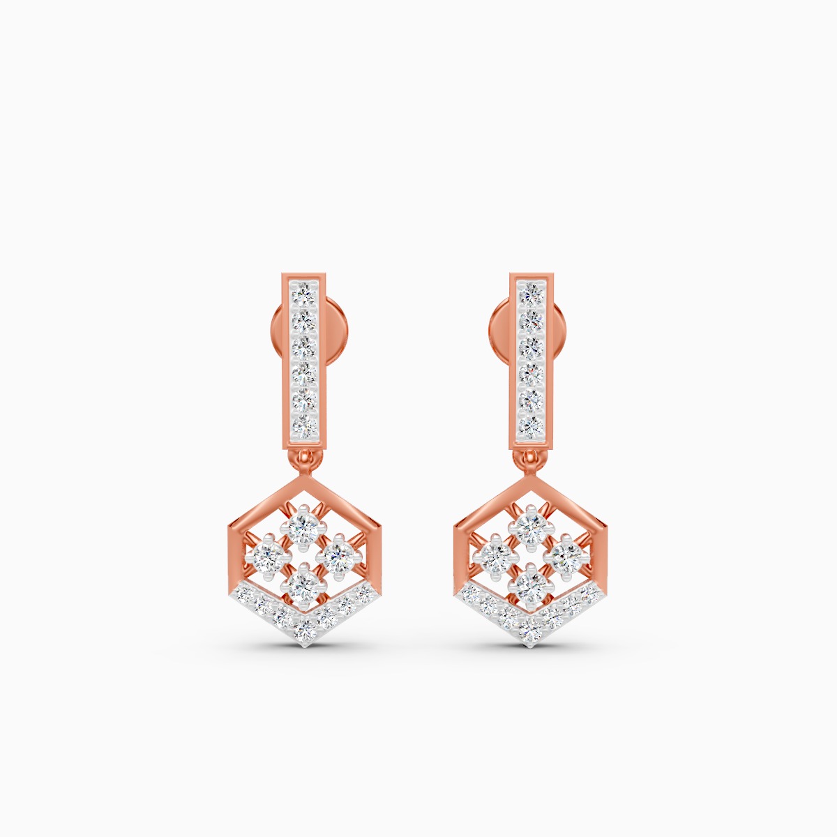 0 StoneThese geometric bloom drop earrings feature a vertical bar of round lab-grown diamonds leading into an open hexagon frame, where petite floral diamond clusters shimmer at the center for a modern yet feminine look. Crafted in solid 9K/14K/18K yellow, white and rose gold, the lab grown diamonds are a conscious, conflict-free alternative to mined stones while offering the same brilliant sparkle. Lightweight and comfortable on the ears, these earrings move gracefully with you and sit securely for all-day wear, making them perfect for modern women who want a refined piece that transitions effortlessly from office meetings to dinners, parties and special occasions.