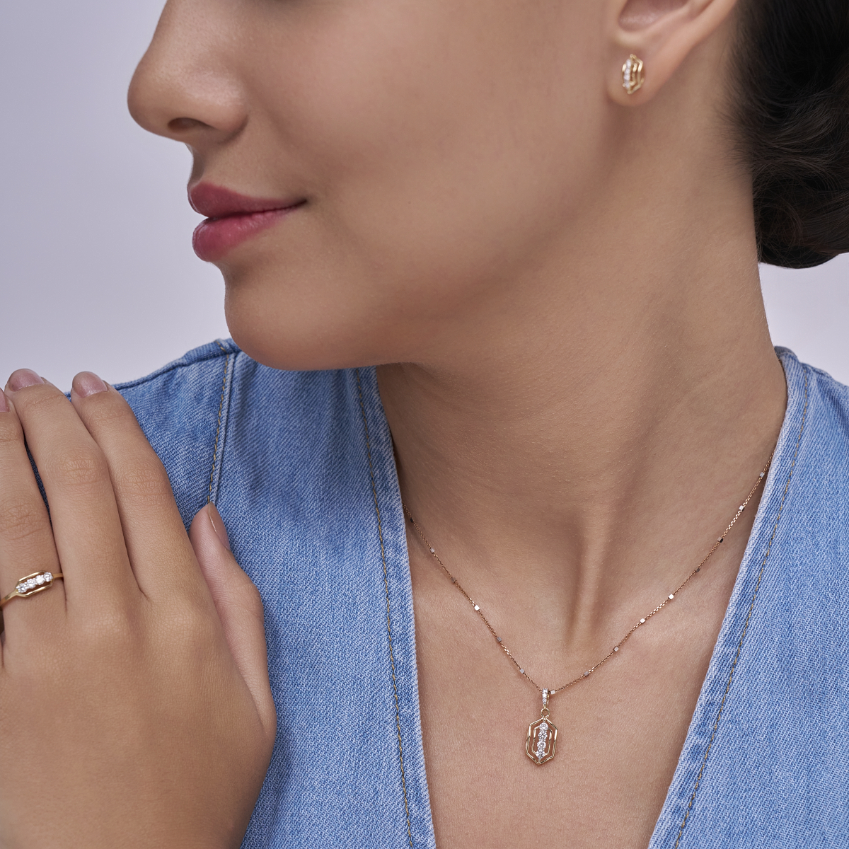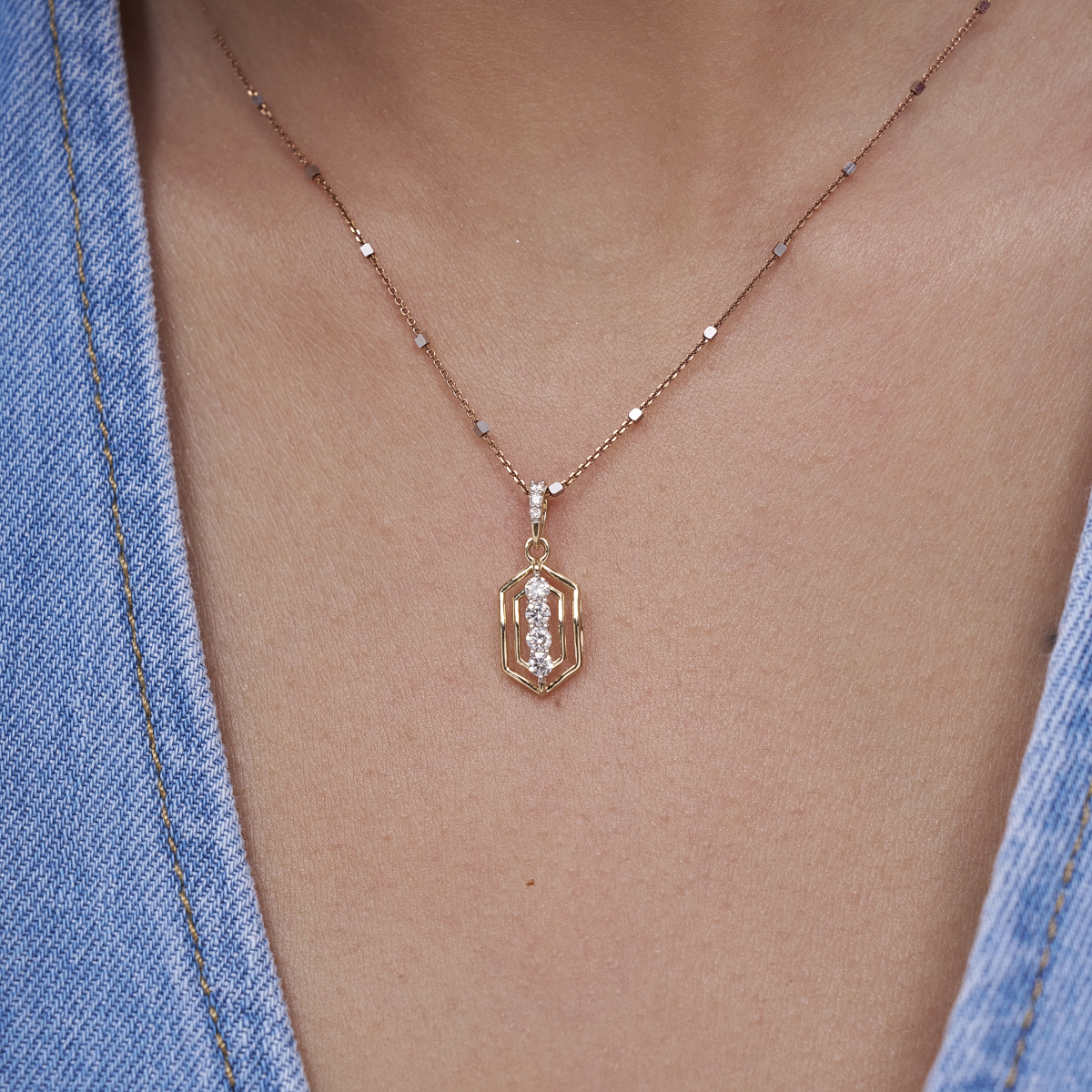0 StoneThis geometric diamond frame pendant is designed for modern women who love clean lines with a hint of sparkle. Crafted with round lab-grown diamonds arranged in a vertical line within a sleek open-frame silhouette, it is set in solid 9K/14K/18K yellow, white or rose gold. The structured yet minimal design feels contemporary and elegant, sitting comfortably on the neckline for effortless everyday wear. Lightweight and refined, it transitions seamlessly from office hours to casual outings, date nights, and understated evening looks. Made with conflict-free, planet-conscious lab-grown diamonds, this pendant is a thoughtful choice for women who value conscious luxury without compromising on style.