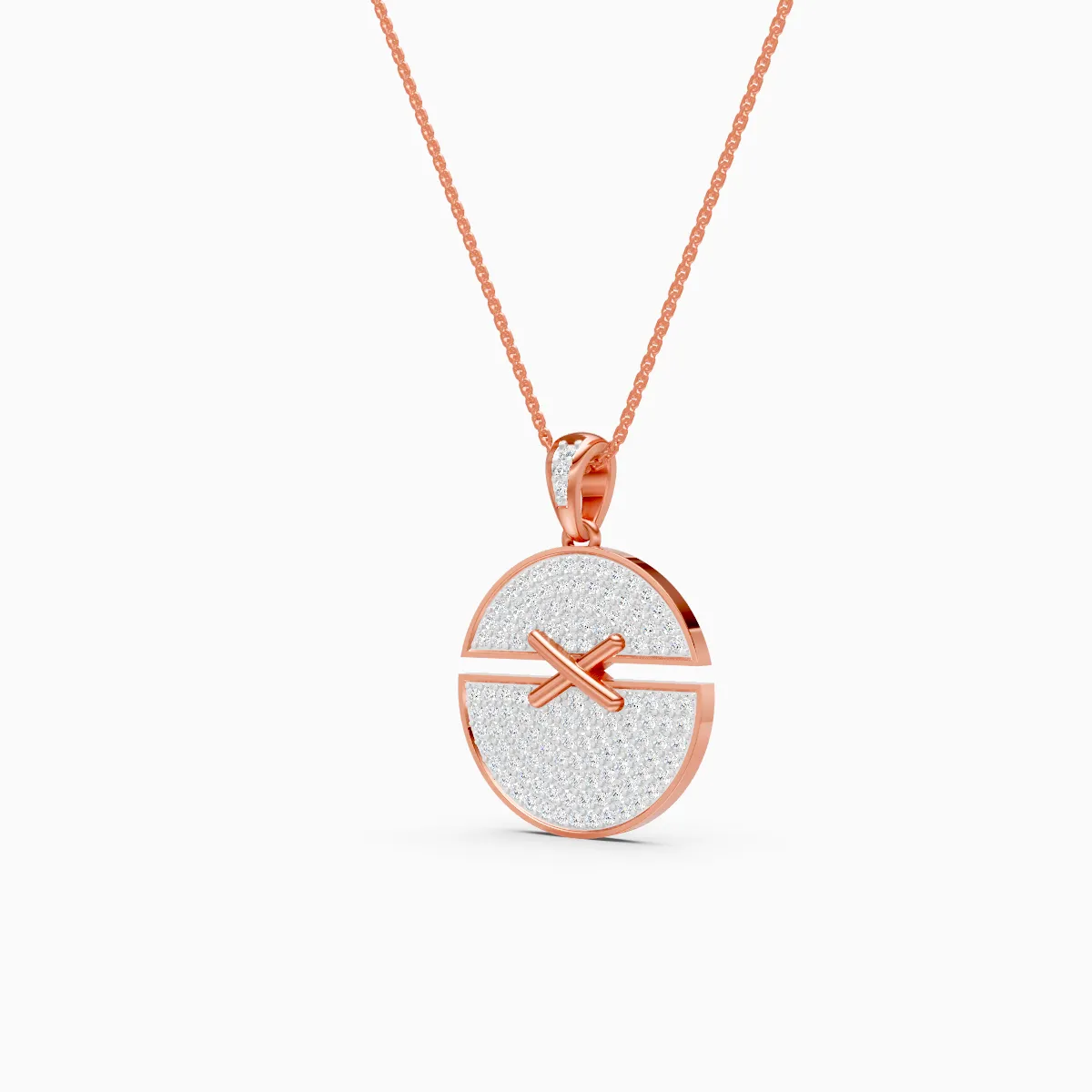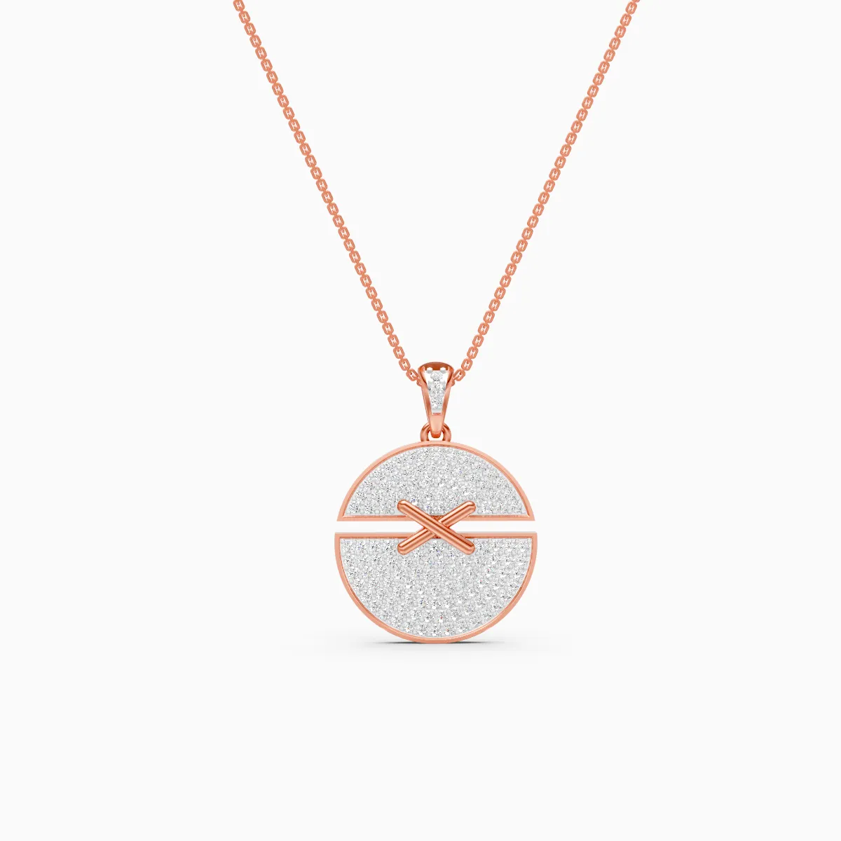 0 StoneA modern statement you’ll reach for every day, this pavé disc pendant features a sleek round silhouette set with shimmering round lab-grown diamonds, finished with a bold X motif for a confident, contemporary edge. Crafted in solid gold—available in 9K/14K/18K yellow, white and rose gold—this piece is anti-tarnish, hypoallergenic, and designed to sit comfortably at the collarbone for effortless, all-day wear. Conflict-free and planet-conscious, lab-grown diamonds offer the same brilliance as mined diamonds with a more modern, responsible story—perfect for women who love clean lines and standout sparkle that transitions from office hours to date nights and special occasions with ease.