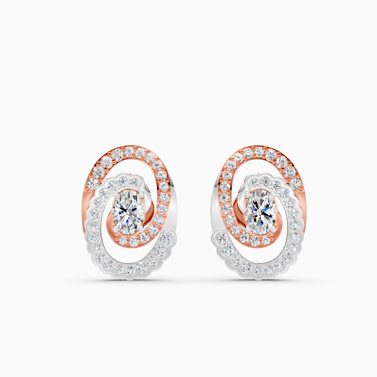 0 StoneThese oval spiral halo studs wrap your ears in a graceful swirl of sparkle, featuring an oval lab grown diamond at the centre framed by twin spirals of round brilliant lab grown diamonds. Set in 9K/14K/18K yellow, white and rose gold, the two-tone-inspired curves give a modern twist to a classic stud silhouette while staying lightweight and comfortable on the lobes. Crafted with conflict-free, planet-conscious lab grown diamonds, these earrings are designed for modern women who love refined drama they can wear from office hours to festive evenings, pairing effortlessly with sarees, dresses or sharp workwear blazers.