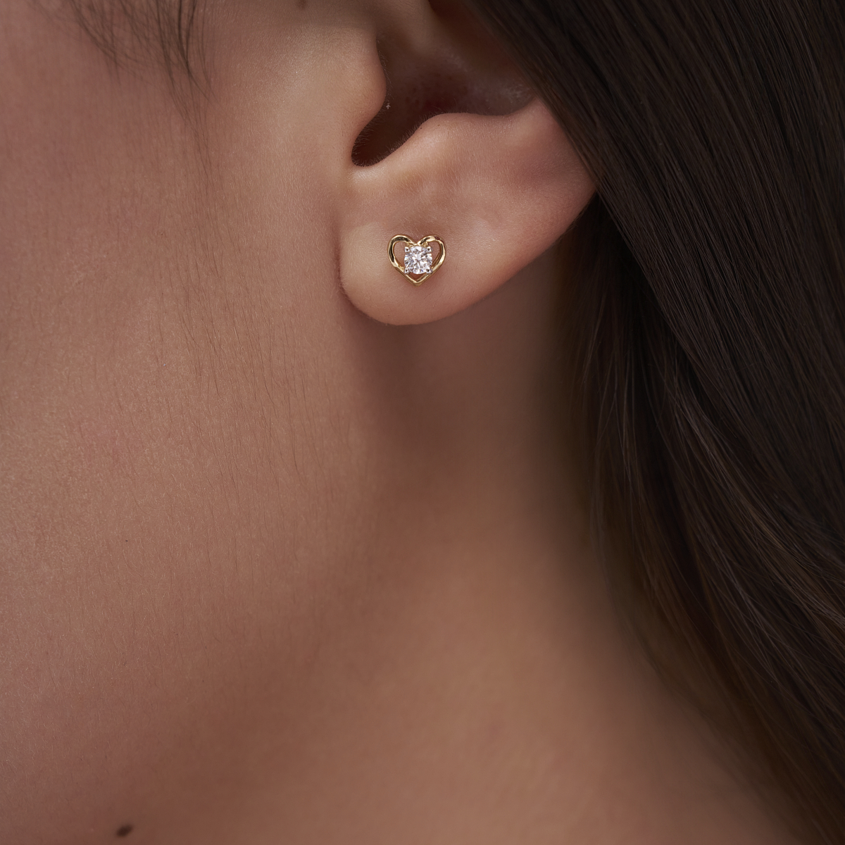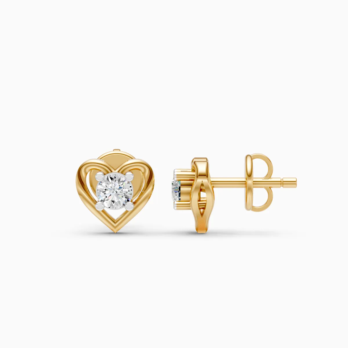 0 StoneThese heart-inspired solitaire stud earrings feature round lab-grown diamonds cradled within a softly contoured open heart motif, creating a romantic yet modern silhouette. Set with lab-grown diamonds in solid 9K, 14K, or 18K yellow, white, or rose gold, they are designed to feel lightweight, skin-friendly, and comfortable for all-day wear. The minimal heart outline adds a touch of warmth and femininity without feeling overdone, making these studs ideal for modern women who love subtle sparkle. Perfect for daily wear, office looks, date nights, or thoughtful gifting, they transition effortlessly from everyday routines to special moments while offering a conflict-free, planet-conscious alternative to mined diamonds.