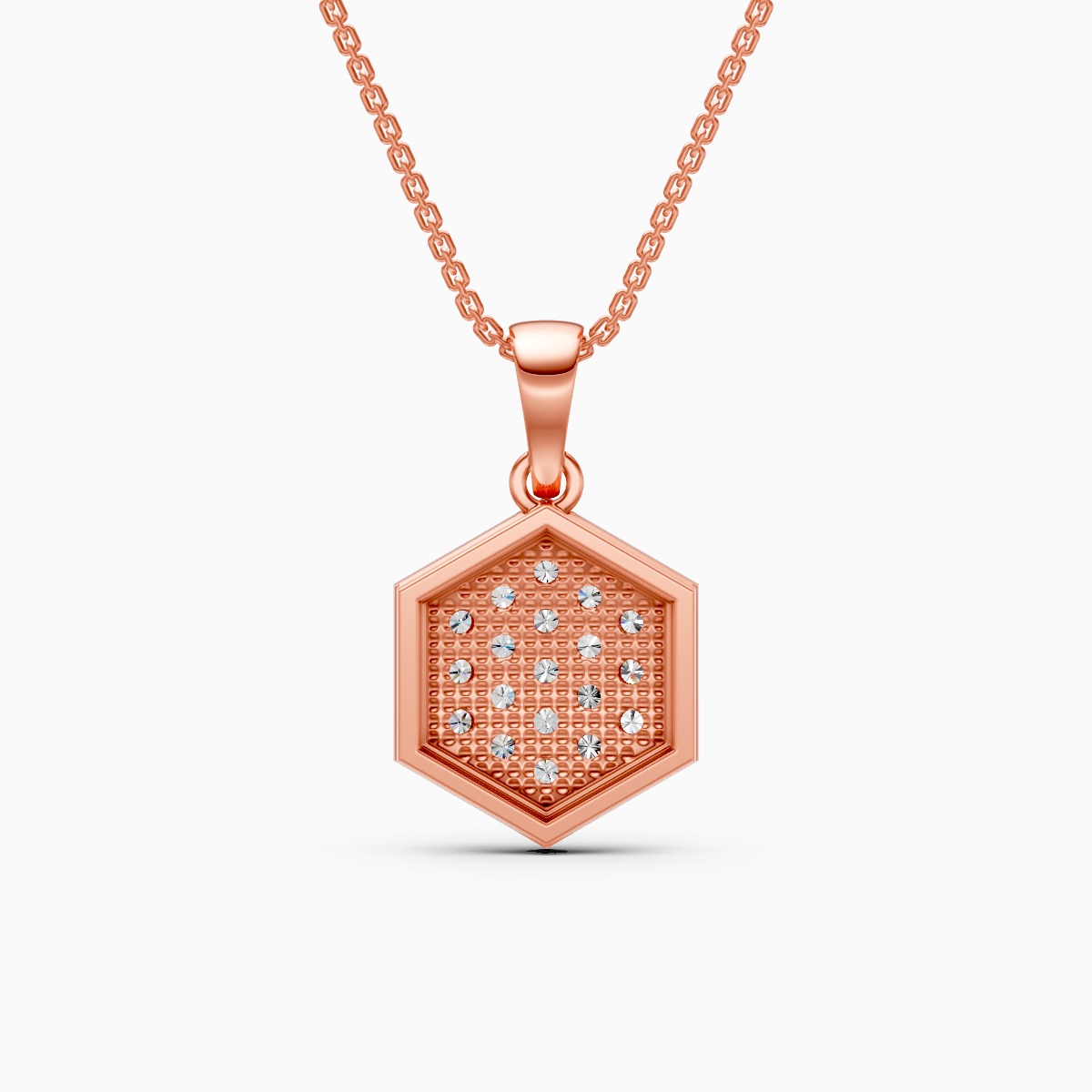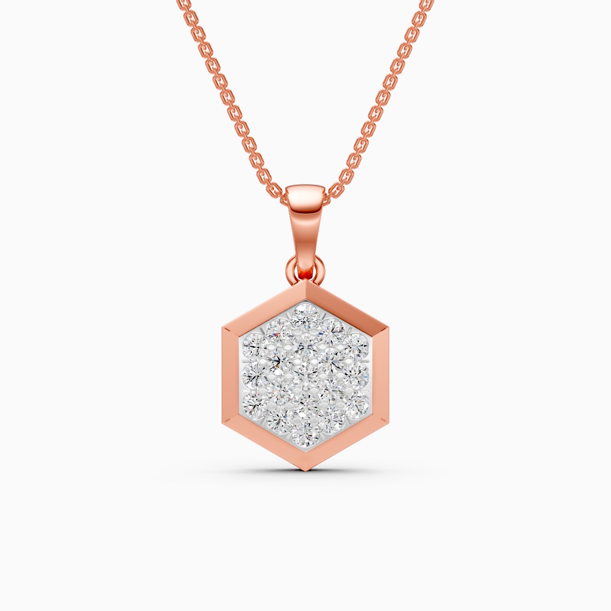 0 StoneA modern twist on classic sparkle, this hexagon cluster pendant features a bed of precision-set round lab-grown diamonds framed in a sleek geometric silhouette, designed for women who love clean lines and quiet luxury. Set with lab-grown diamonds in 9K/14K/18K yellow, white and rose gold, it sits neatly at the collarbone and lays flat against the skin for effortless comfort, whether you’re in back-to-back meetings, out to brunch or dressing up a simple tee. The geometric shape adds a contemporary edge while the clustered diamonds create a soft, radiant glow, making it an easy everyday signature that moves with you from office hours to evening plans.