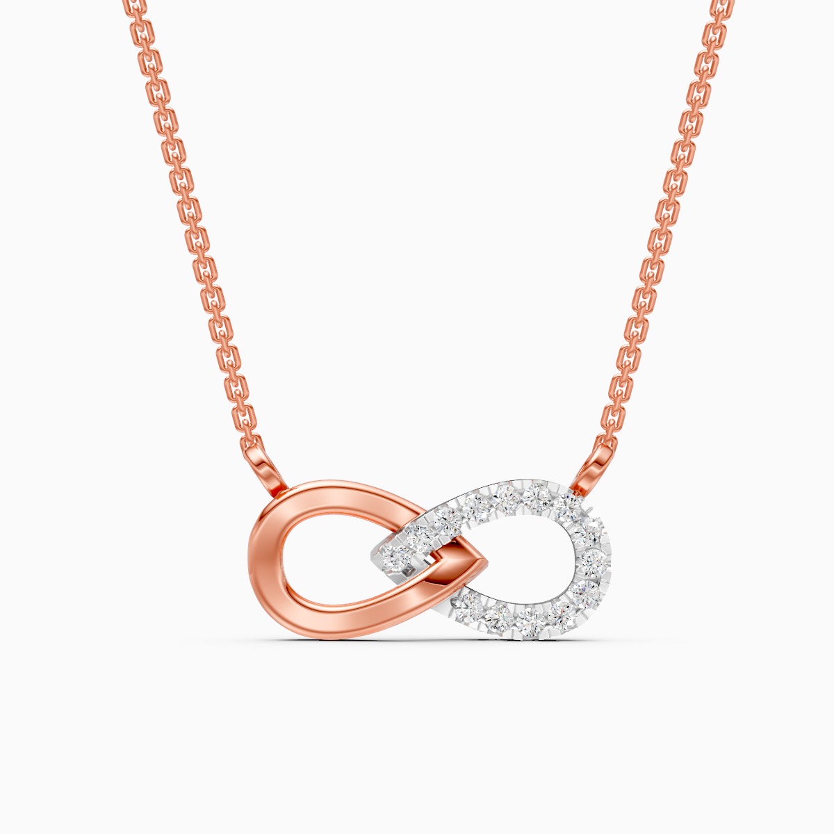 0 StoneSymbolize your eternal connection with this graceful infinity necklace, a timeless design that speaks of forever. The pendant features the classic figure-eight silhouette, artistically reimagined with one loop of smooth, polished gold and the other intertwined loop set with brilliant round lab-grown diamonds. This harmonious balance of texture and sparkle creates a delicate, romantic look perfect for daily wear or as a meaningful gift. Crafted in your choice of solid 9K, 14K, or 18K yellow, white, or rose gold, it sits lightly on the neckline, making it an effortless addition to any outfit. As a conflict-free accessory, it offers a beautiful way to wear your values and your love.
