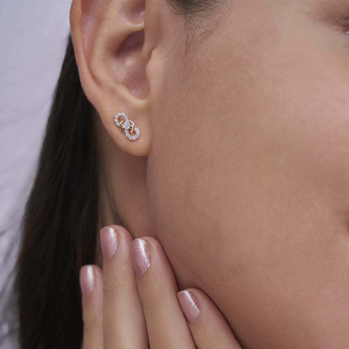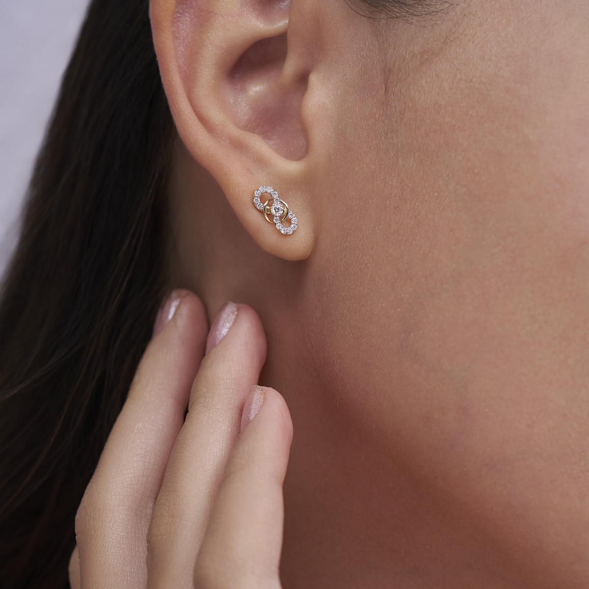 0 StoneThese interlinked infinity diamond studs feature round lab-grown diamonds set in a fluid, geometric infinity-inspired motif that symbolises connection, continuity, and modern elegance. Crafted in solid gold and available in 9K, 14K, and 18K yellow, white, and rose gold, the design blends soft curves with a refined sparkle that feels contemporary yet timeless. The lightweight construction sits comfortably on the ear, making these studs easy to wear from morning meetings to evening plans. Designed for modern women who love meaningful, everyday jewellery, these lab-grown diamonds offer a conflict-free, planet-conscious alternative to mined stones while delivering brilliant shine and effortless sophistication for daily wear, office styling, brunches, and special occasions.