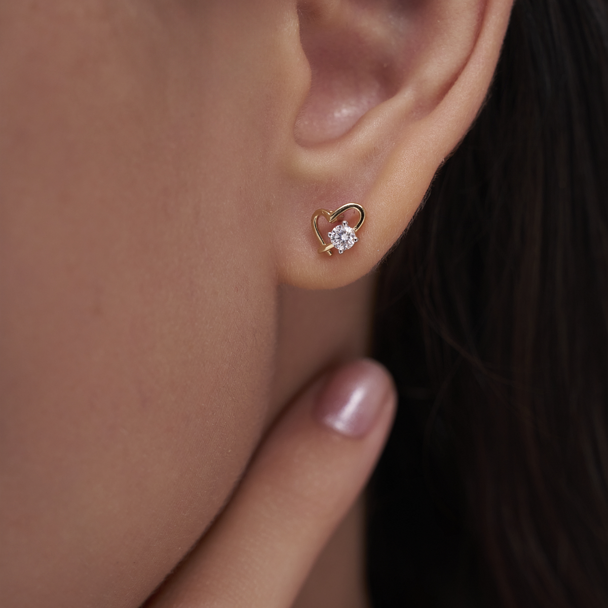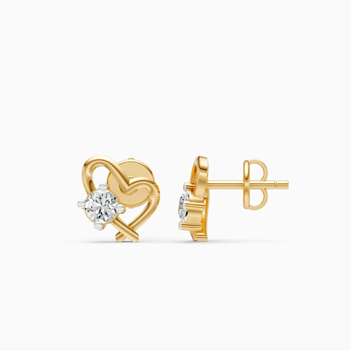 0 StoneThese Intertwined Heart Diamond Studs are a refined expression of everyday romance, designed for modern women who prefer subtle sparkle with meaning. Crafted with round lab-grown diamonds set in solid 9K/14K/18K yellow, white and rose gold, the soft heart motif wraps gently around the diamond, creating a fluid, contemporary silhouette that sits comfortably on the ear. Lightweight and skin-friendly, they are easy to wear from morning meetings to evening plans, pairing effortlessly with office wear, casual outfits, or a simple date-night look. Made with conflict-free, planet-conscious lab-grown diamonds, these studs offer a modern alternative to mined diamonds while delivering timeless elegance for women who value conscious luxury in their daily style.