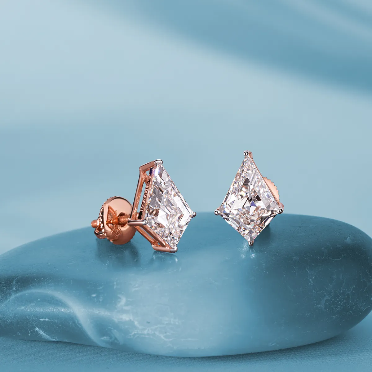 0 StoneThese geometric kite solitaire stud earrings are a sleek, modern twist on classic everyday diamonds, designed for women who like their sparkle clean, edgy and effortless. Each earring features a bold kite-shaped lab-grown diamond held in minimal prongs so the stone takes center stage, crafted in solid 9K/14K/18K yellow, white and rose gold that is anti-tarnish and hypoallergenic. The crisp angles of the cut catch light beautifully while the secure screw-back closure keeps them comfortable and snug on the ear from office hours to late-night plans. Conflict-free and planet-conscious, they’re the perfect piece of conscious luxury to wear as your signature pair of studs, whether with a power blazer, weekend denim or an evening dress.