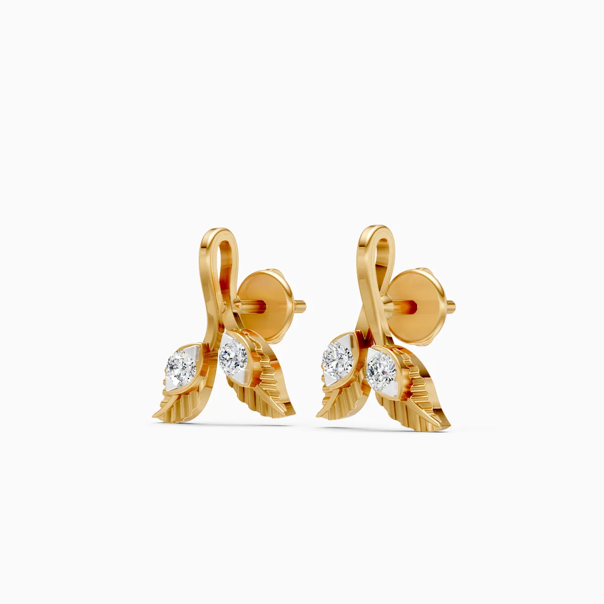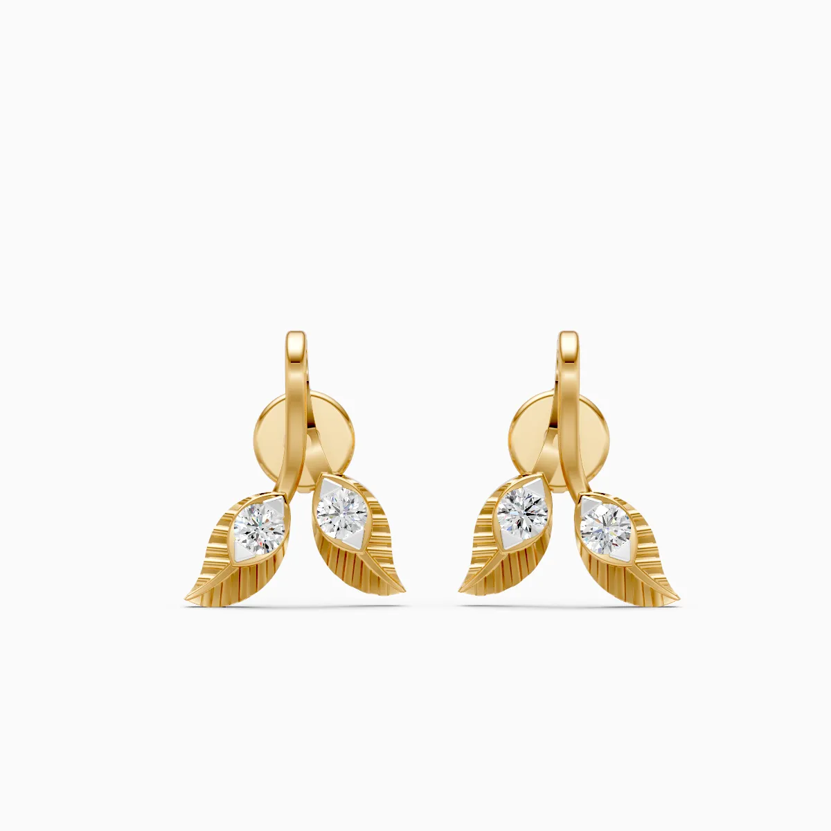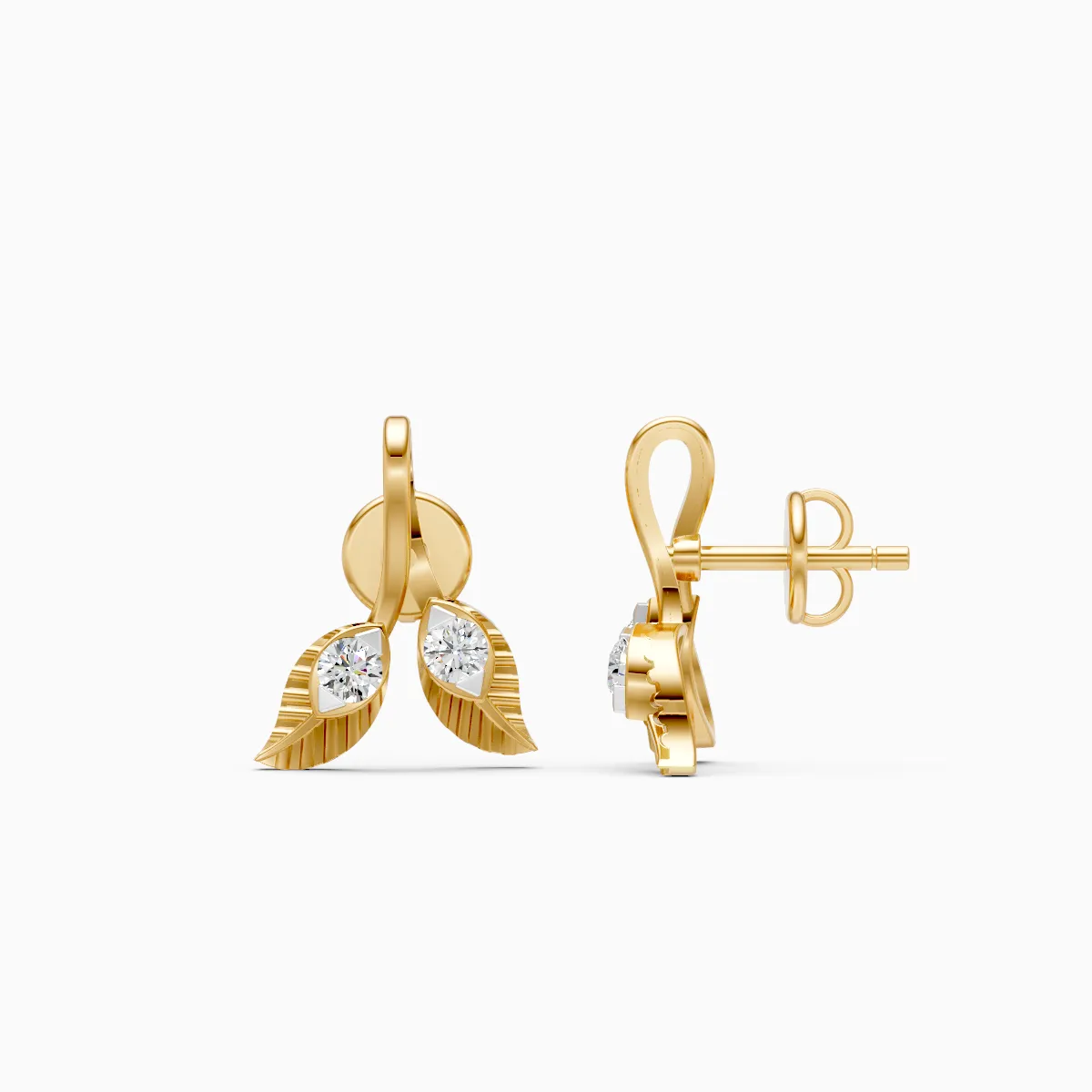 0 StoneDesigned as a delicate pair of leaf-inspired stud earrings, this piece features round lab-grown diamonds nestled within softly textured leaf motifs, creating a balanced blend of nature and modern elegance. Set with lab-grown diamonds in 9K/14K/18K yellow, white, or rose gold, these earrings are lightweight, skin-friendly, and thoughtfully crafted for all-day comfort. The subtle sparkle and organic form make them ideal for modern women who appreciate understated luxury, perfect for daily wear, office looks, brunches, or effortless desk-to-dinner styling. A conscious, conflict-free choice, these studs add a refined glow to everyday life without feeling overdone.