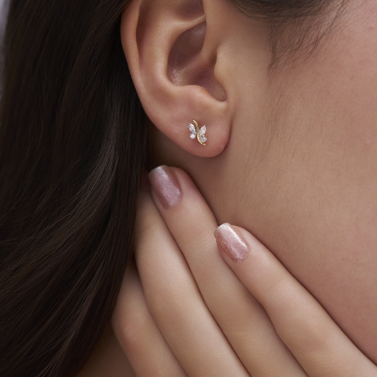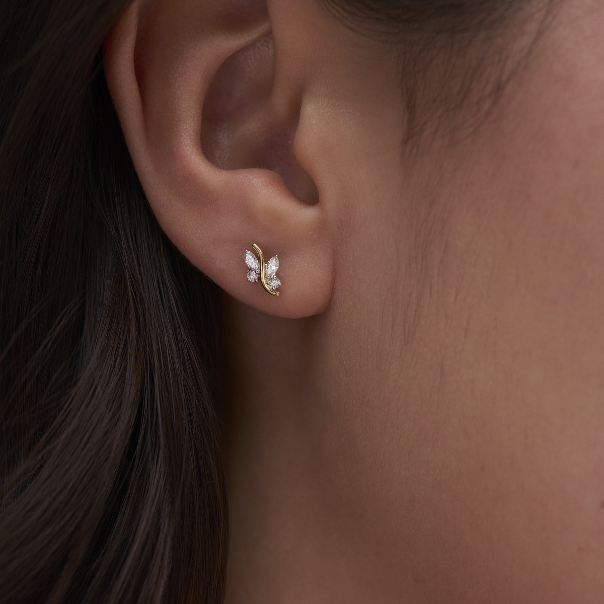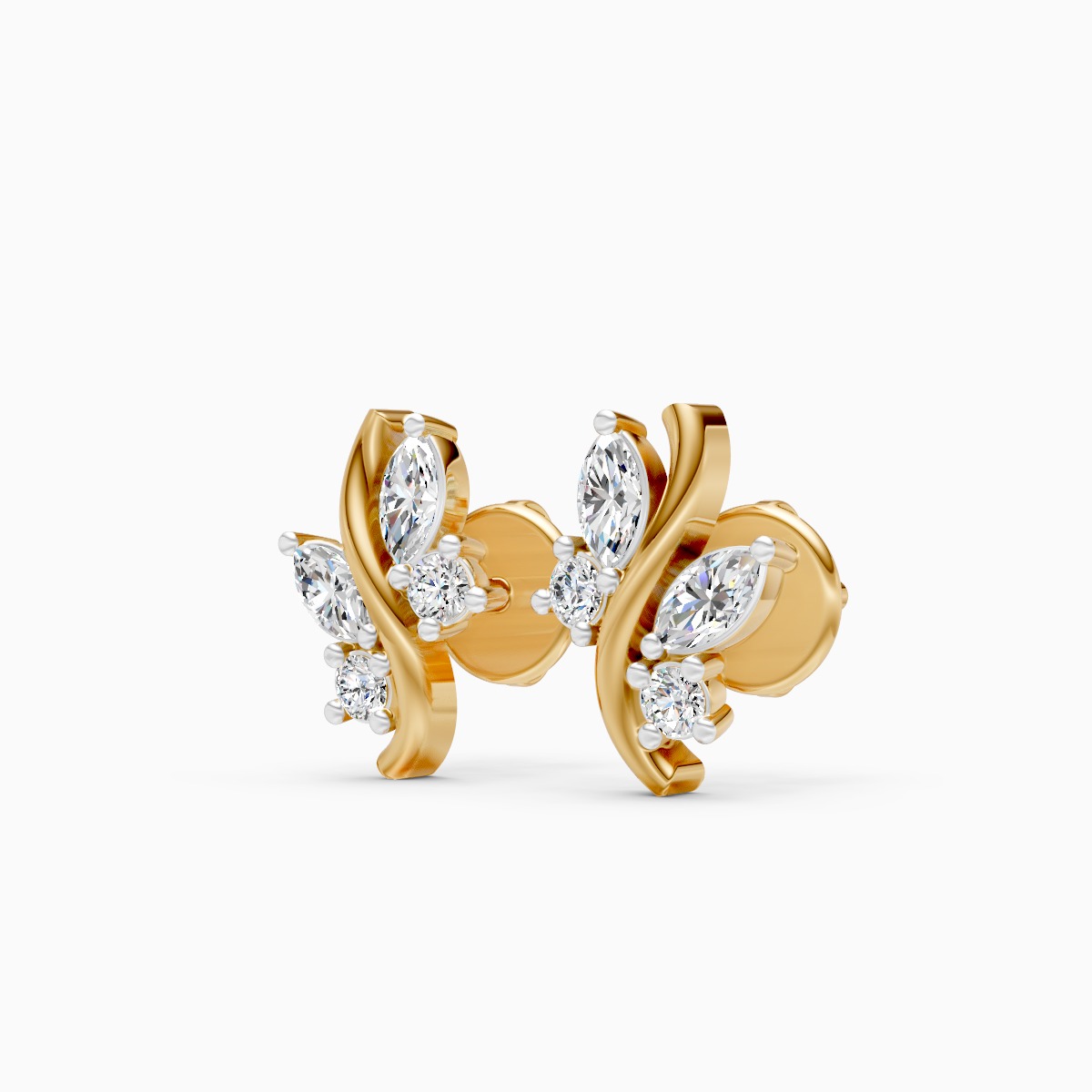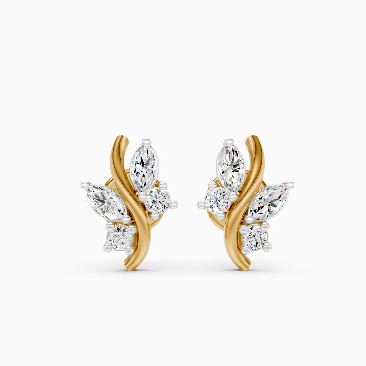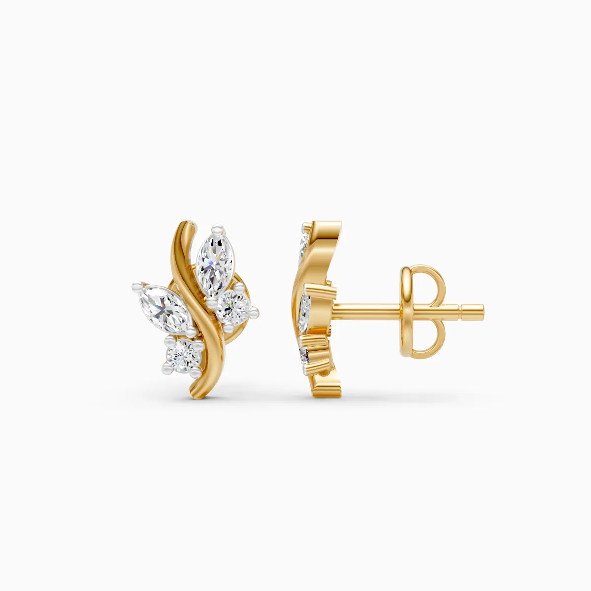 0 StoneThese elegant marquise leaf curve stud earrings feature a graceful flow of marquise- and round-shaped lab-grown diamonds arranged along a soft, sculpted gold curve, creating a refined nature-inspired silhouette. Set with lab-grown diamonds in 9K, 14K or 18K yellow, white or rose gold, the design feels modern yet timeless, sitting comfortably on the ear with a lightweight, secure fit. Thoughtfully crafted for modern women who prefer subtle sparkle with character, these studs transition effortlessly from office wear to brunch, date nights and intimate celebrations. A conscious, conflict-free alternative to mined diamonds, they offer everyday luxury that aligns beautifully with a mindful, contemporary lifestyle.