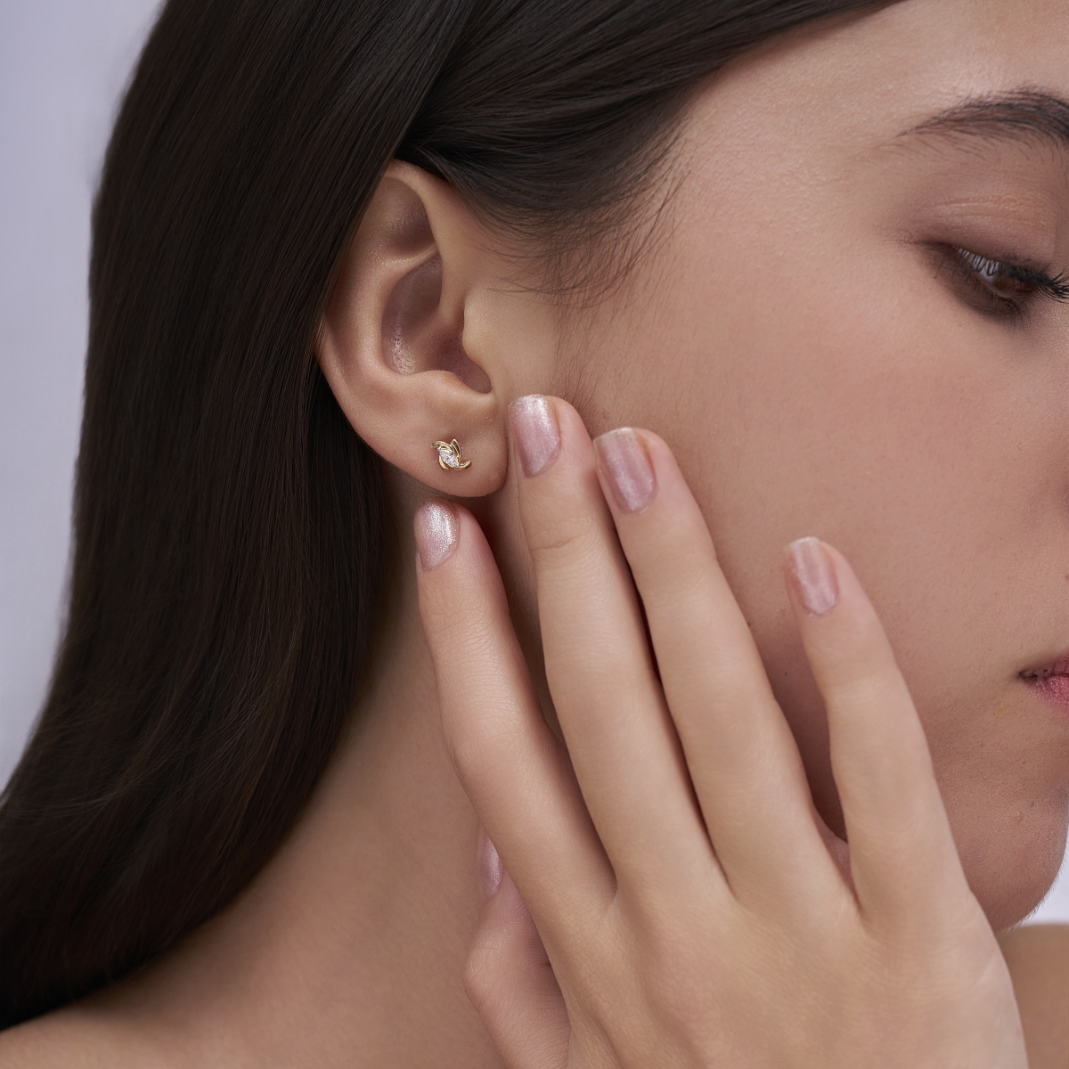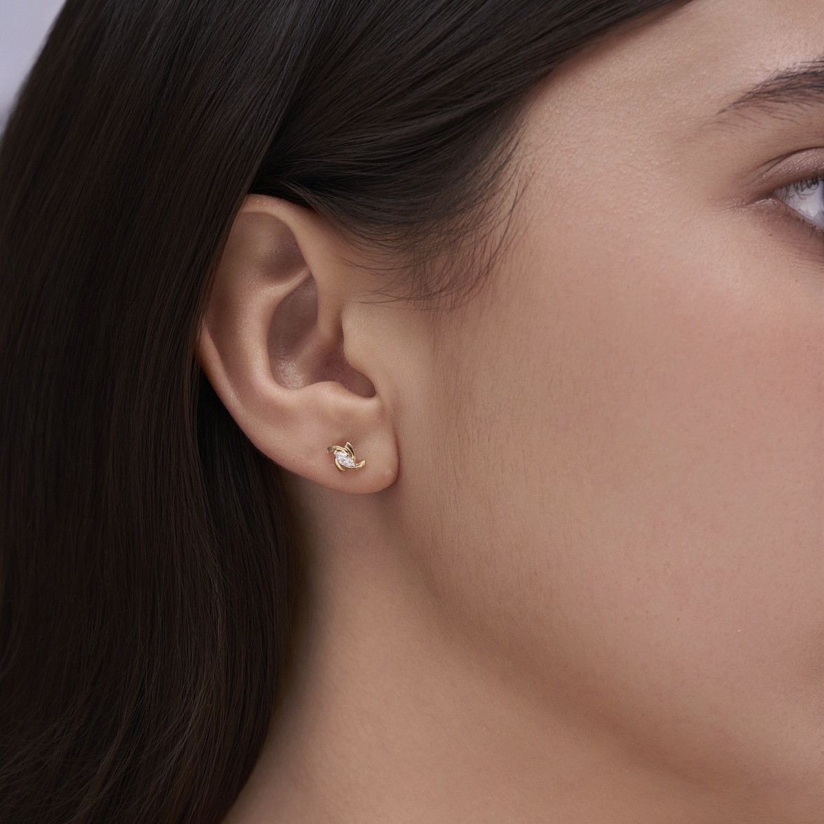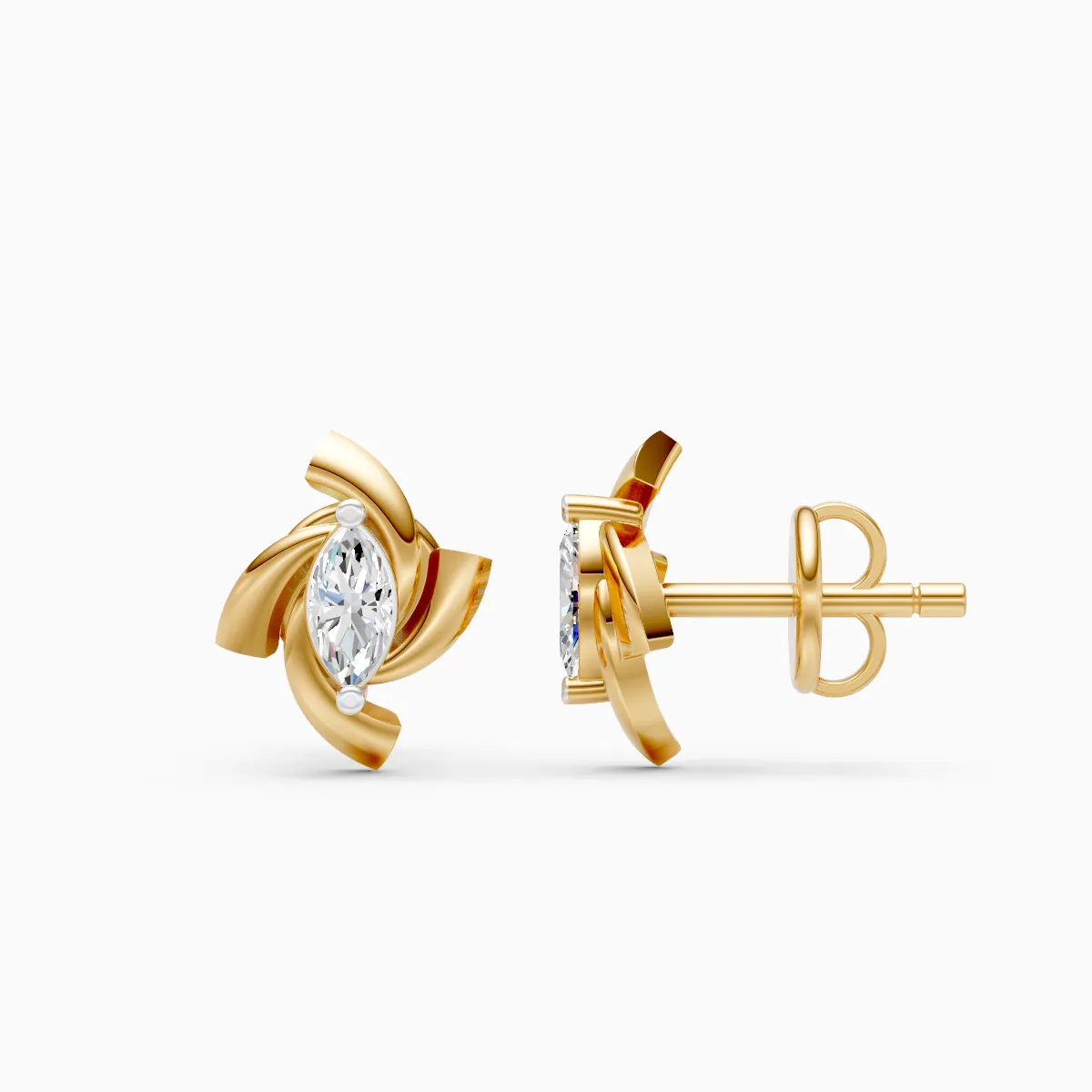 0 StoneThese elegant stud earrings feature marquise-shaped lab-grown diamonds set within a fluid swirl motif, creating a soft, pinwheel-inspired design that feels modern yet timeless. Crafted for everyday ease, they are set with lab-grown diamonds in 9K/14K/18K yellow, white and rose gold, offering a refined sparkle that sits comfortably on the ear without feeling heavy. The marquise diamonds add a gentle elongating effect, while the curved gold form brings movement and warmth, making them perfect for modern women who appreciate subtle design details. Conflict-free and planet-conscious, these studs transition effortlessly from office wear to brunch dates and evening outings, becoming a versatile signature piece for daily, polished style.