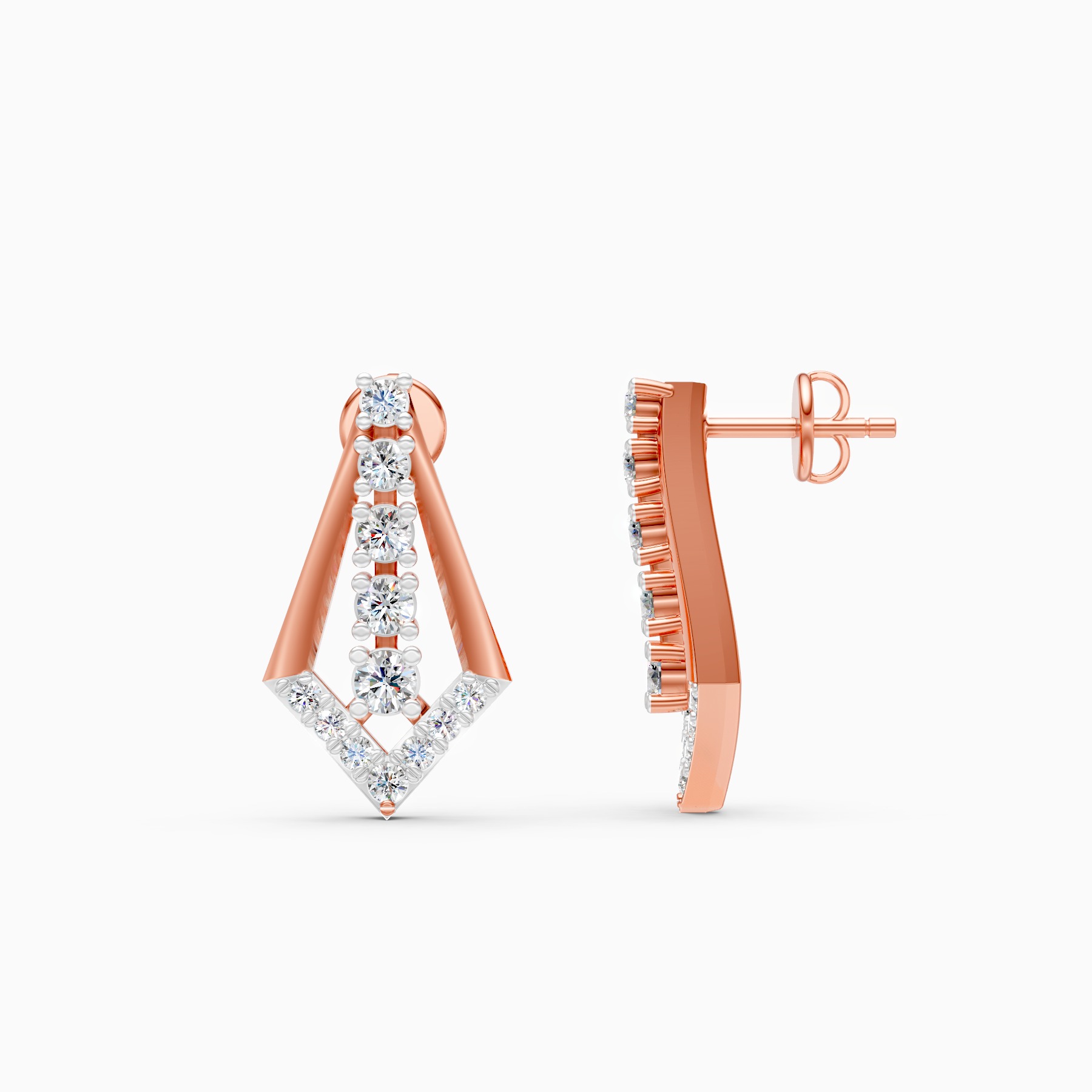 0 StoneA sharp, modern twist on classic sparkle, these Geometric V Diamond Studs feature a vertical line of round lab-grown diamonds framed in a sleek V-shaped silhouette, crafted in solid 9K/14K/18K yellow, white or rose gold. The open geometric form keeps them light on the ear while the diamonds add just the right amount of brilliance, making them perfect for urban women who move from office hours to after-work plans without changing their jewellery. Hypoallergenic and skin-friendly, they sit comfortably on the lobe and pair effortlessly with everything from tailored shirts to evening dresses, becoming an easy, everyday signature for women who love clean lines and conscious luxury.