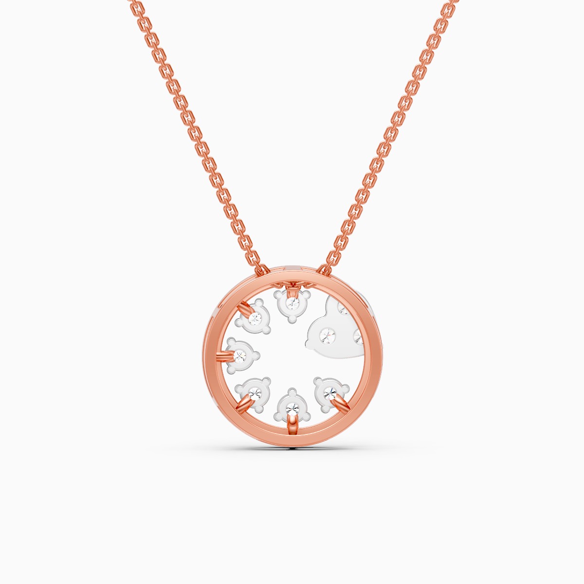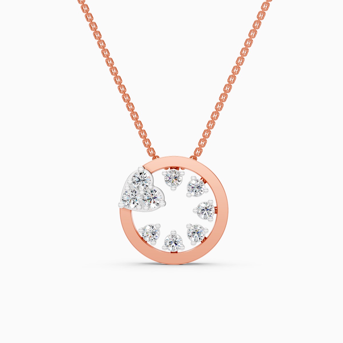 0 StoneA romantic yet modern everyday piece, this open circle pendant features a shimmering heart-shaped cluster and scattered round lab-grown diamonds that appear to float within the frame, crafted in solid 9K/14K/18K yellow, white and rose gold. Designed for modern women who like their sparkle to feel effortless, it sits light and comfortable on the neckline, making it perfect for daily wear, office hours, brunch plans or date nights. The conflict-free, planet-conscious lab-grown diamonds bring a fresh, contemporary take to classic diamond jewelry, giving you a subtle statement that works from desk to dinner without ever feeling overdone.