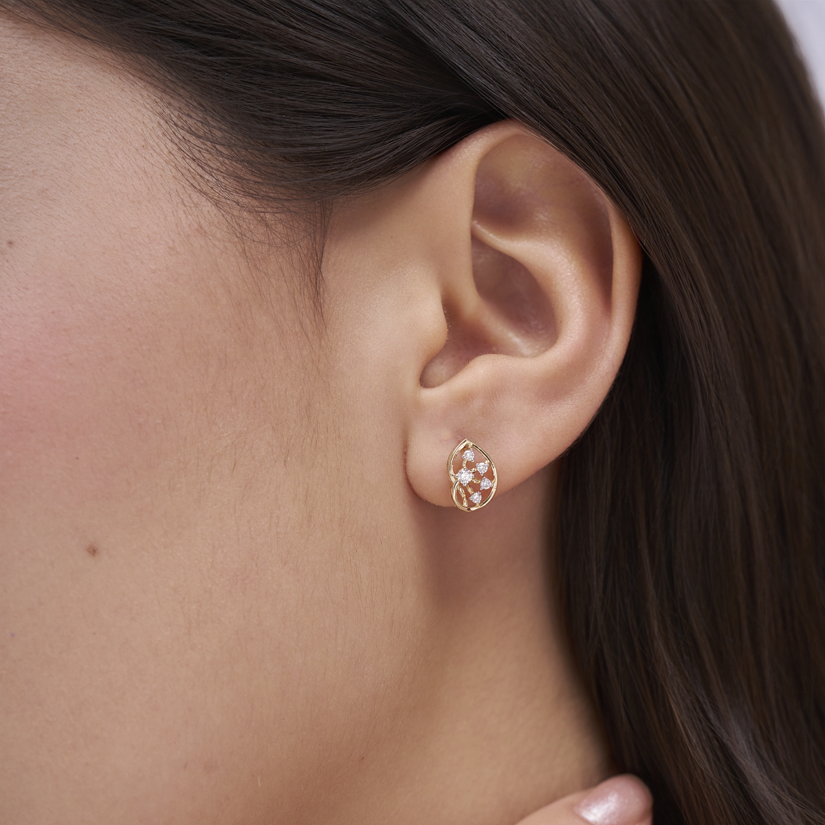 0 StoneThese curved leaf cluster stud earrings feature round lab-grown diamonds delicately arranged along a flowing, nature-inspired curve that brings soft movement and refined sparkle to the design. Set with lab-grown diamonds in 9K, 14K, or 18K yellow, white, or rose gold, they reflect a modern yet feminine aesthetic rooted in everyday elegance. Lightweight, skin-friendly, and comfortable for long hours, these studs sit gracefully on the ear, making them ideal for daily wear, office styling, brunches, and understated evening looks. A conscious, conflict-free choice, they are designed for modern women who appreciate subtle luxury with a fresh, contemporary feel.