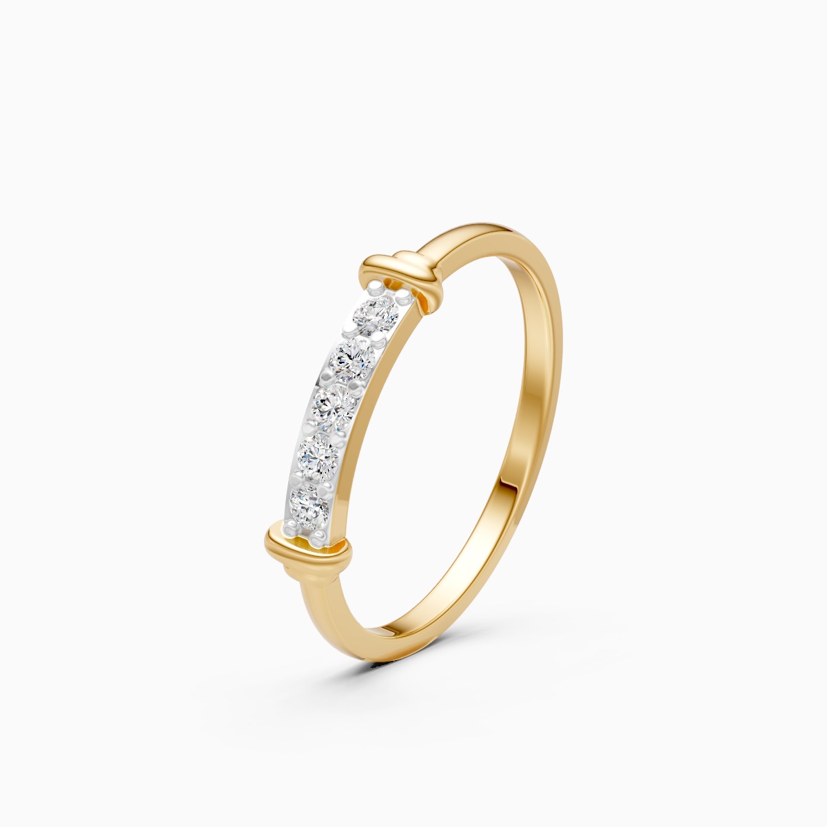 0 StoneDefine your everyday style with the clean, architectural lines of this modern ring, set with sparkling lab-grown diamonds in 9K/14K/18K yellow, white, and rose gold. The design features a sleek horizontal bar of diamonds that bridges a contemporary split shank, creating a sophisticated "floating" effect that is both minimalist and striking. Crafted as a sustainable, conflict-free choice for the conscious urban woman, its low-profile and lightweight structure ensures snag-free comfort for all-day wear. Whether you are typing at a desk or raising a glass at dinner, this ring serves as the perfect polished signature piece.