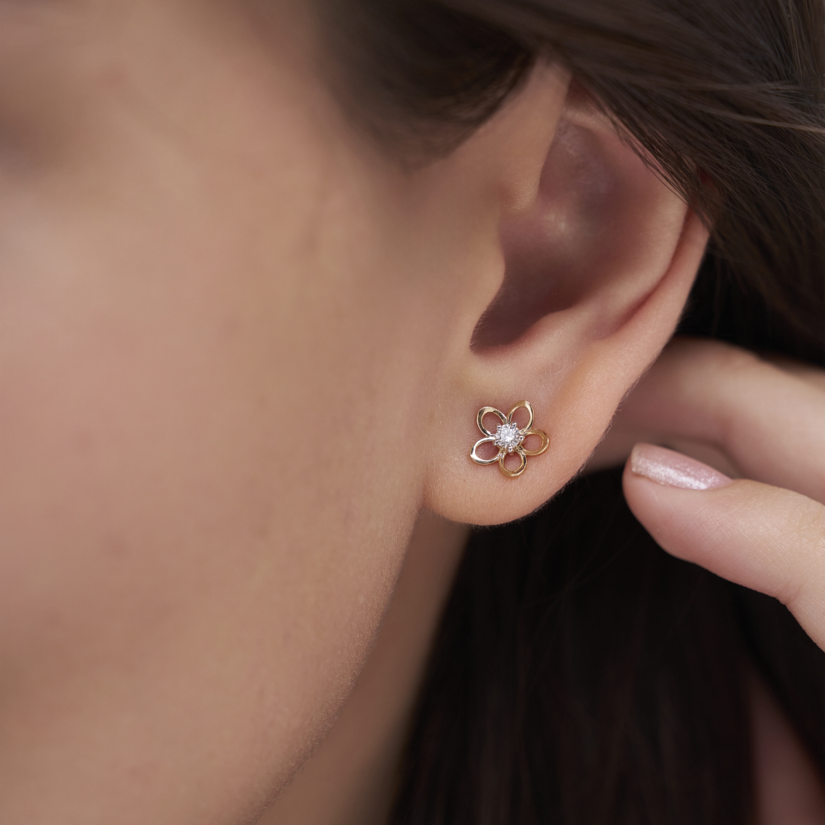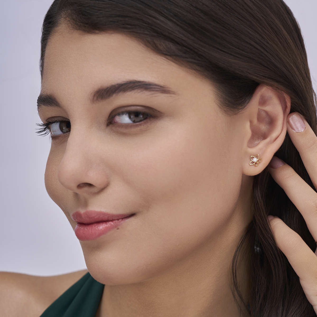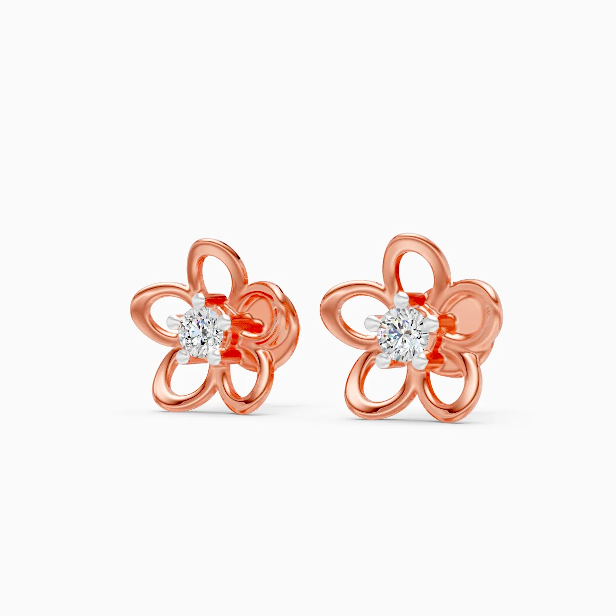 0 StoneThese floral stud earrings feature round lab-grown diamonds arranged in a delicate flower motif, designed to bring soft sparkle to everyday looks. Set with round lab-grown diamonds in 9K/14K/18K yellow, white and rose gold, the open floral structure feels lightweight and comfortable on the ears, making them ideal for all-day wear. The design is minimal yet feminine, sitting close to the ear for a neat, elegant finish that works effortlessly from office hours to brunches and casual evenings. Crafted as a conscious, conflict-free alternative to mined diamonds, these studs are perfect for modern women who love subtle shine and timeless floral details as part of their everyday jewellery rotation.