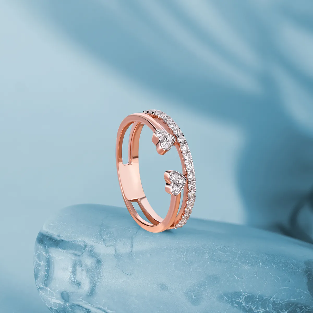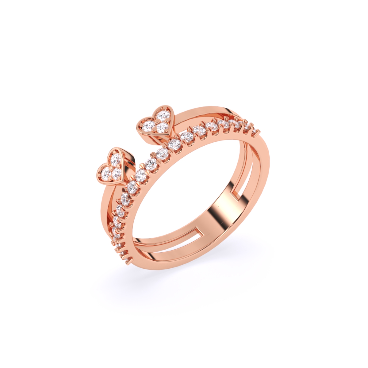 0 StoneA romantic take on everyday diamonds, this Double Heart Crown Ring features two petite heart motifs perched above a fine pavé band, all set with round lab grown diamonds for a soft yet sparkling finish. Crafted in solid 9K, 14K or 18K yellow, white or rose gold, the open band keeps the ring lightweight and comfortable, making it perfect for daily wear, office hours and spontaneous date nights. The conflict-free, planet-conscious lab grown diamonds offer modern women an elegant way to wear meaningful sparkle that still feels minimal, refined and easy to style with everything from denim to dresses.