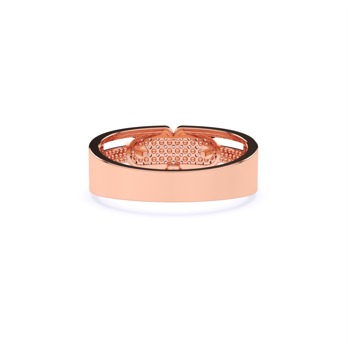 0 StoneA bold twist on a classic band, this pavé capsule split band ring features a pill-shaped centre plate studded with round lab grown diamonds, framed by sleek open shoulders for a strong, architectural look. Crafted in solid 9K/14K/18K yellow, white and rose gold, the smooth inner shank and softened edges keep it comfortable for all-day wear, while the raised diamond panel adds a refined statement sparkle. Designed for modern men who prefer clean lines with subtle detail, this band moves effortlessly from office hours to evenings out and special celebrations, making it an easy everyday signature that still feels luxurious and conscious.