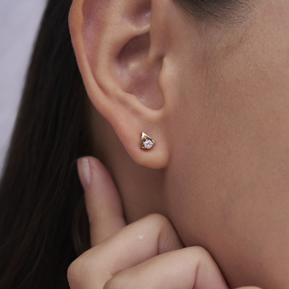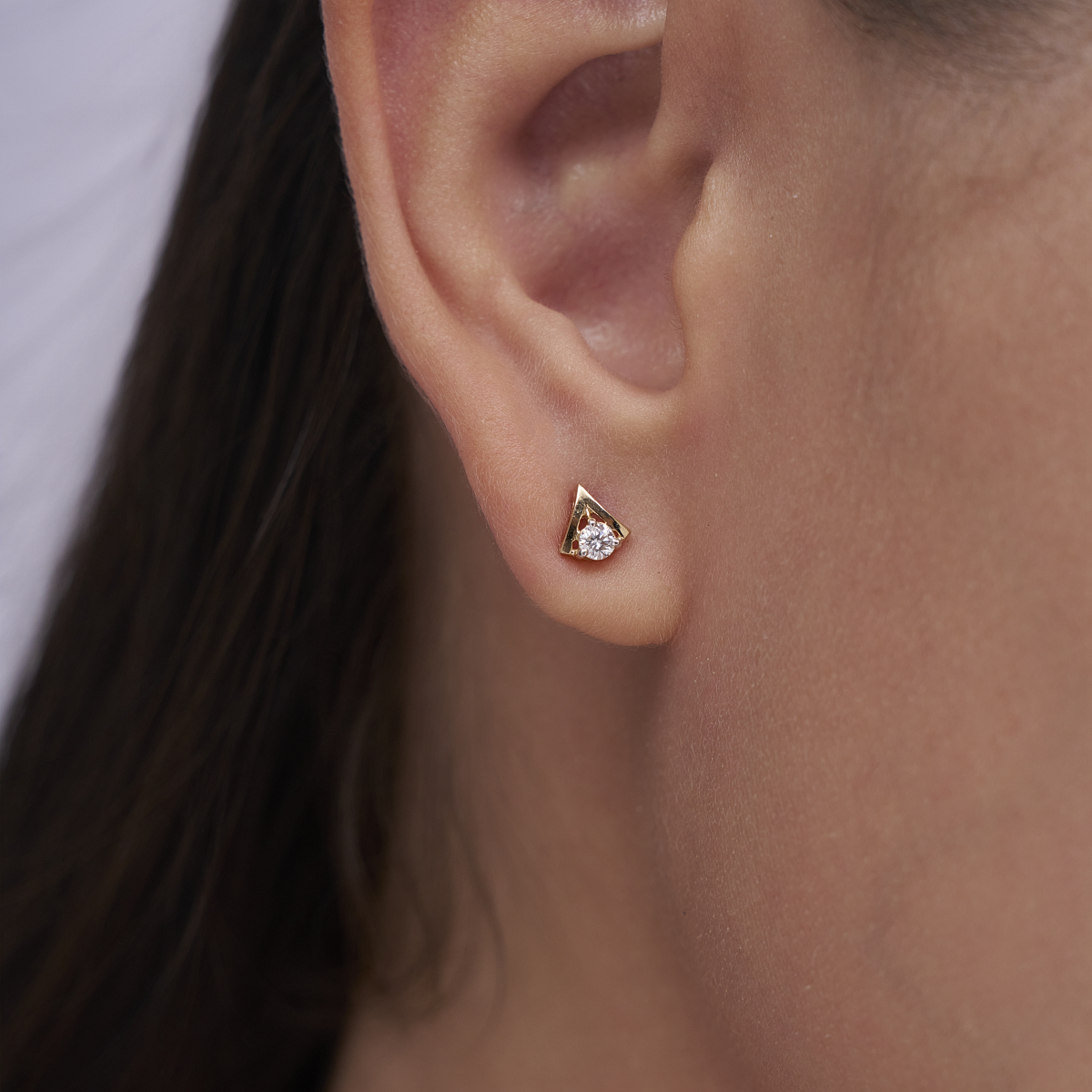 0 StoneDesigned for modern women who appreciate clean lines and subtle sparkle, these geometric solitaire stud earrings feature a round lab-grown diamond nestled within a sleek, angular frame. Set with lab-grown diamonds in solid 9K/14K/18K yellow, white, or rose gold, the design balances minimal structure with everyday elegance. Lightweight, skin-friendly, and comfortable on the ears, these studs sit flush and feel effortless for long hours of wear. The lab-grown diamonds offer a conflict-free, planet-conscious alternative to mined diamonds, making them a thoughtful choice for conscious luxury. Perfect for daily wear, office styling, brunch dates, or understated evening looks, these studs transition seamlessly from desk to dinner as a refined everyday essential.