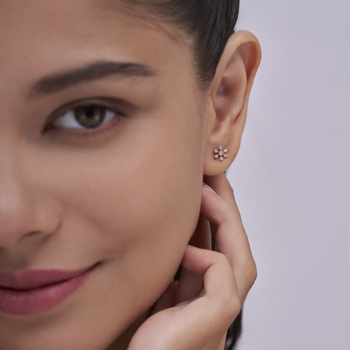 0 StoneTiny diamond blooms for every day, these floral stud earrings are crafted with round lab-grown diamonds arranged in a six-petal flower that sits neatly on the earlobe. Set with lab-grown diamonds in solid 9K/14K/18K yellow, white and rose gold, they offer a soft yet sparkling finish that feels modern, minimal and ultra-feminine. The secure screw-back closure keeps them comfortable and close to the ear, making them an easy choice for office wear, coffee runs, Zoom calls or casual evenings out. Designed for modern women who love subtle sparkle, this pair is a conscious alternative to mined-diamond jewellery, bringing conflict-free shine to your everyday style.