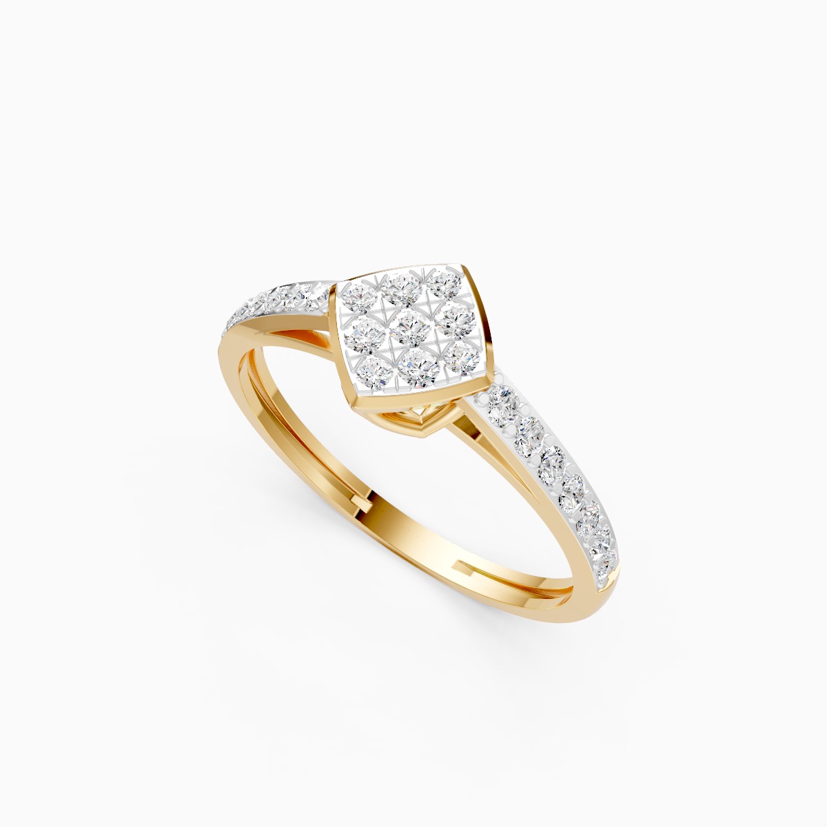 0 StoneThis modern square cluster ring is designed for women who love a refined yet noticeable sparkle in their everyday style. Featuring round lab-grown diamonds arranged in a geometric square cluster, with additional diamonds along the shoulders, the design feels contemporary, balanced, and elegant without being overpowering. Set with lab-grown diamonds in solid 9K, 14K, or 18K yellow, white, or rose gold, it offers a conscious, conflict-free alternative to mined diamonds. The slim, smooth band sits comfortably on the finger, making it ideal for daily wear, office looks, brunches, and effortless desk-to-dinner styling. Thoughtfully crafted for modern women, this ring blends structure and softness, adding a confident yet understated glow to everyday moments and special occasions alike.