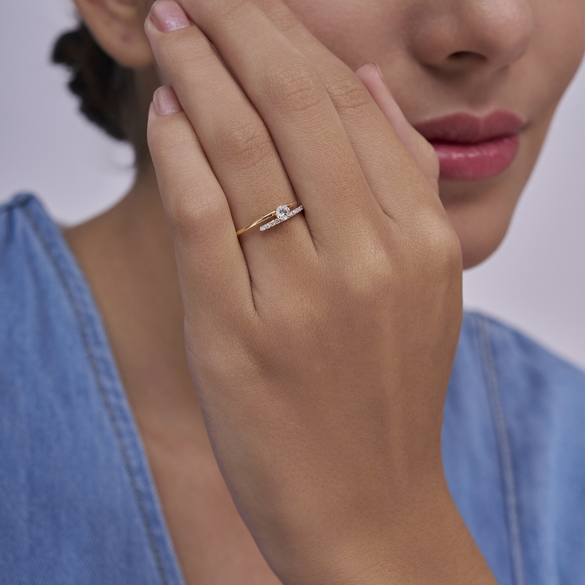 0 StoneThis modern open-style ring features a round-cut solitaire paired with a gently curved diamond-studded band, creating a fluid, contemporary silhouette that feels light and elegant on the finger. Set with round lab-grown diamonds in 9K/14K/18K yellow, white or rose gold, the design balances subtle sparkle with everyday comfort. The softly sweeping curve adds a refined, modern touch, making it ideal for daily wear, office styling, brunches or intimate date nights. Crafted for modern women who value conscious luxury, this ring is a conflict-free, planet-conscious alternative to mined diamonds and works beautifully as a signature everyday piece or a meaningful gift.