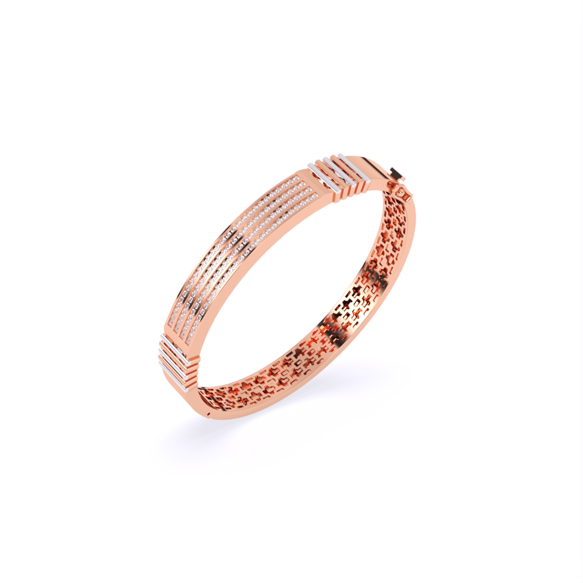 0 StoneA sleek take on a classic bangle, this design features multiple rows of round lab-grown diamonds pavé set across a gently curved front, creating a refined stripe of shimmer around your wrist. Crafted in solid 9K/14K/18K yellow, white or rose gold, the bracelet feels smooth and comfortable on the skin, with a secure fit that’s easy to wear from office hours to evening plans. The lab grown diamonds offer the same brilliance as mined stones while being a conflict-free, planet-conscious choice for modern women who love polished, everyday luxury. Style it solo as your signature piece or stack it with slimmer bracelets for a more statement look.