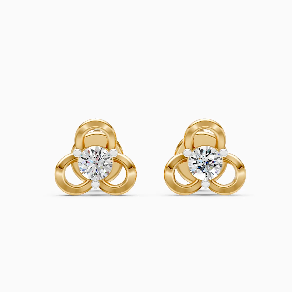 0 StoneThese elegant floral-inspired stud earrings feature round lab-grown diamonds cradled within a soft, three-petal trillium motif, creating a delicate balance of sparkle and sculptural gold. Set with lab-grown diamonds in 9K/14K/18K yellow, white and rose gold, this design feels refined yet modern, sitting comfortably on the ear for effortless all-day wear. Lightweight and skin-friendly, these studs are ideal for modern women who love subtle, everyday diamonds that transition seamlessly from office hours to brunches, date nights, and special moments. Crafted with conflict-free, planet-conscious lab-grown diamonds, they offer a thoughtful alternative to mined diamonds without compromising on beauty or brilliance.