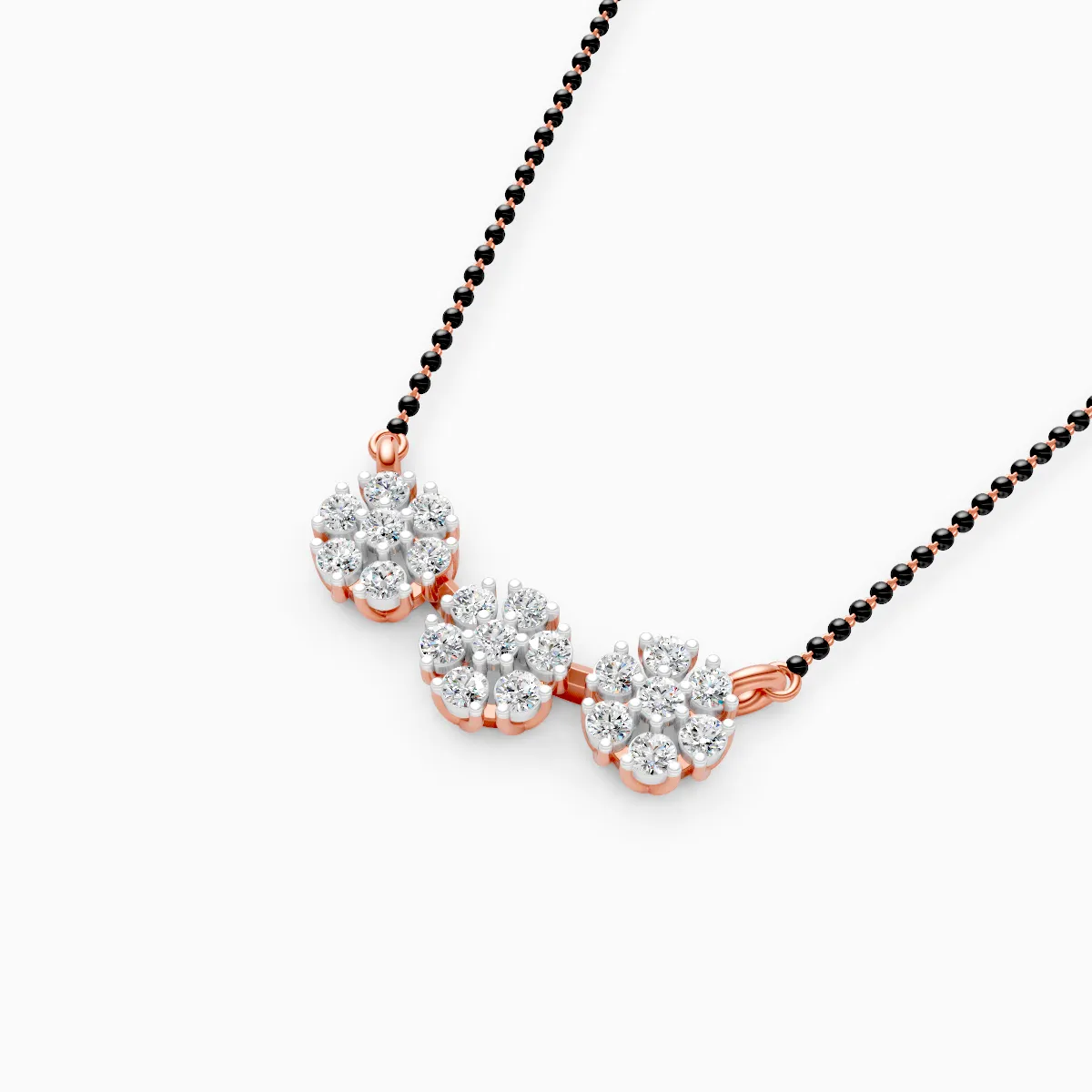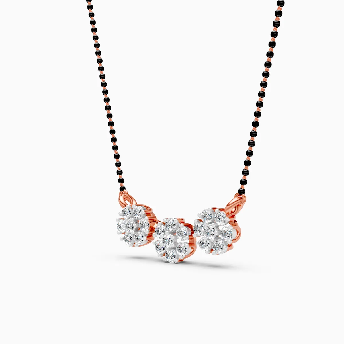 1 StoneThis delicate Triple Floral Round Mangalsutra reimagines a classic symbol of love with a modern, minimal twist. Three round lab grown diamond clusters form soft floral blooms that sit gracefully at the centre, accented with sleek black beads for a refined yet traditional touch. Crafted in solid 9K/14K/18K yellow, white or rose gold, the piece is hypoallergenic, anti-tarnish and comfortable enough to wear all day, from office meetings to family dinners and festive gatherings. Set with conflict-free, planet-conscious lab grown diamonds, it’s designed for contemporary married women who want their mangalsutra to feel as effortless as their everyday style—lightweight, elegant and easy to layer with other fine jewellery.