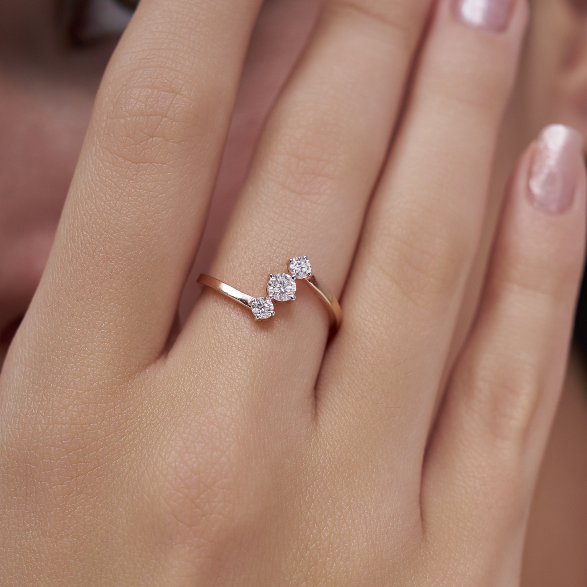 0 StoneA modern take on a classic three-diamond silhouette, this sleek bypass ring curves gently around the finger with three graduated round lab grown diamonds set in a clean prong setting. Crafted in solid 9K/14K/18K yellow, white or rose gold, it brings balanced sparkle and a contemporary wrap-around feel while staying lightweight and comfortable for all–day wear. Designed for modern women who love subtle, meaningful shine, it works beautifully as a promise ring, a right-hand ring or a stackable everyday piece you can wear from office hours to dinner dates.