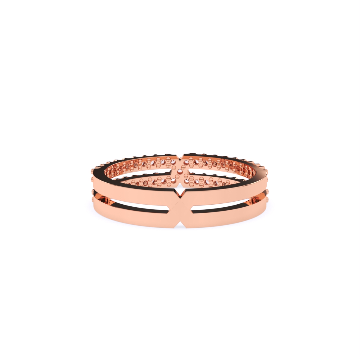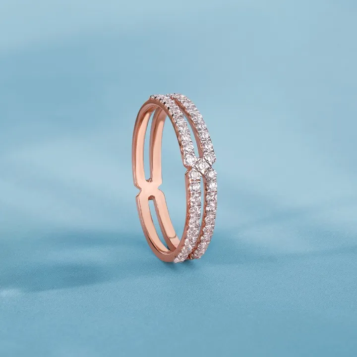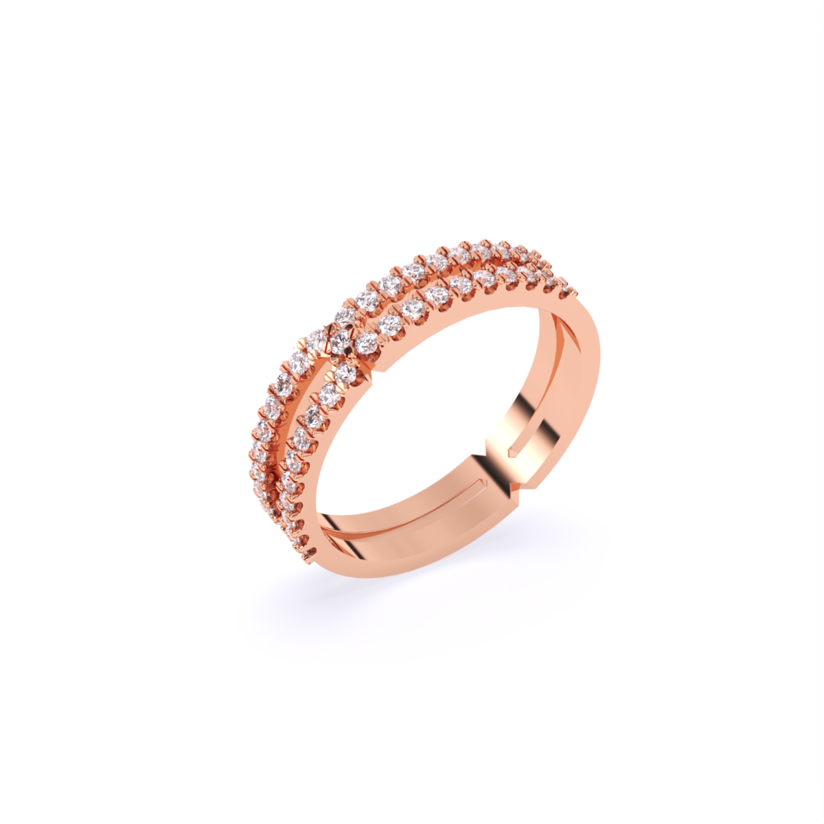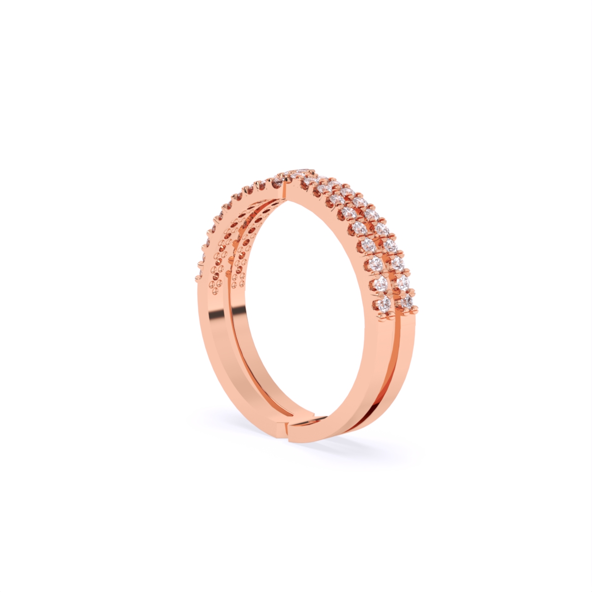 0 StoneA modern take on a classic band, this ring features two sleek rows of round lab grown diamonds that meet at a delicate central cluster, creating a refined shimmer from every angle. Crafted in solid 9K/14K/18K yellow, white or rose gold, it’s anti-tarnish, hypoallergenic and comfortable enough to wear all day. The open double-band silhouette feels light on the finger yet sparkly enough to move effortlessly from office hours to dinners and weekends. Designed for modern women who love everyday diamonds with a polished, minimal edge, this piece works beautifully as a stand-alone statement or stacked with your favourite bands.