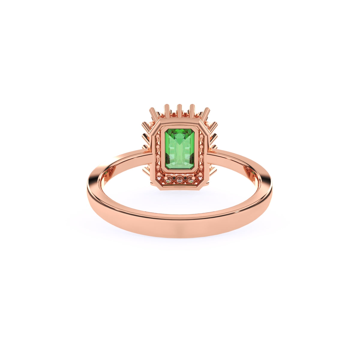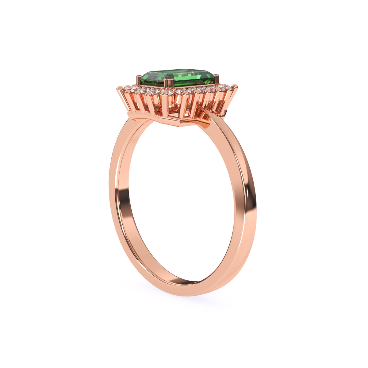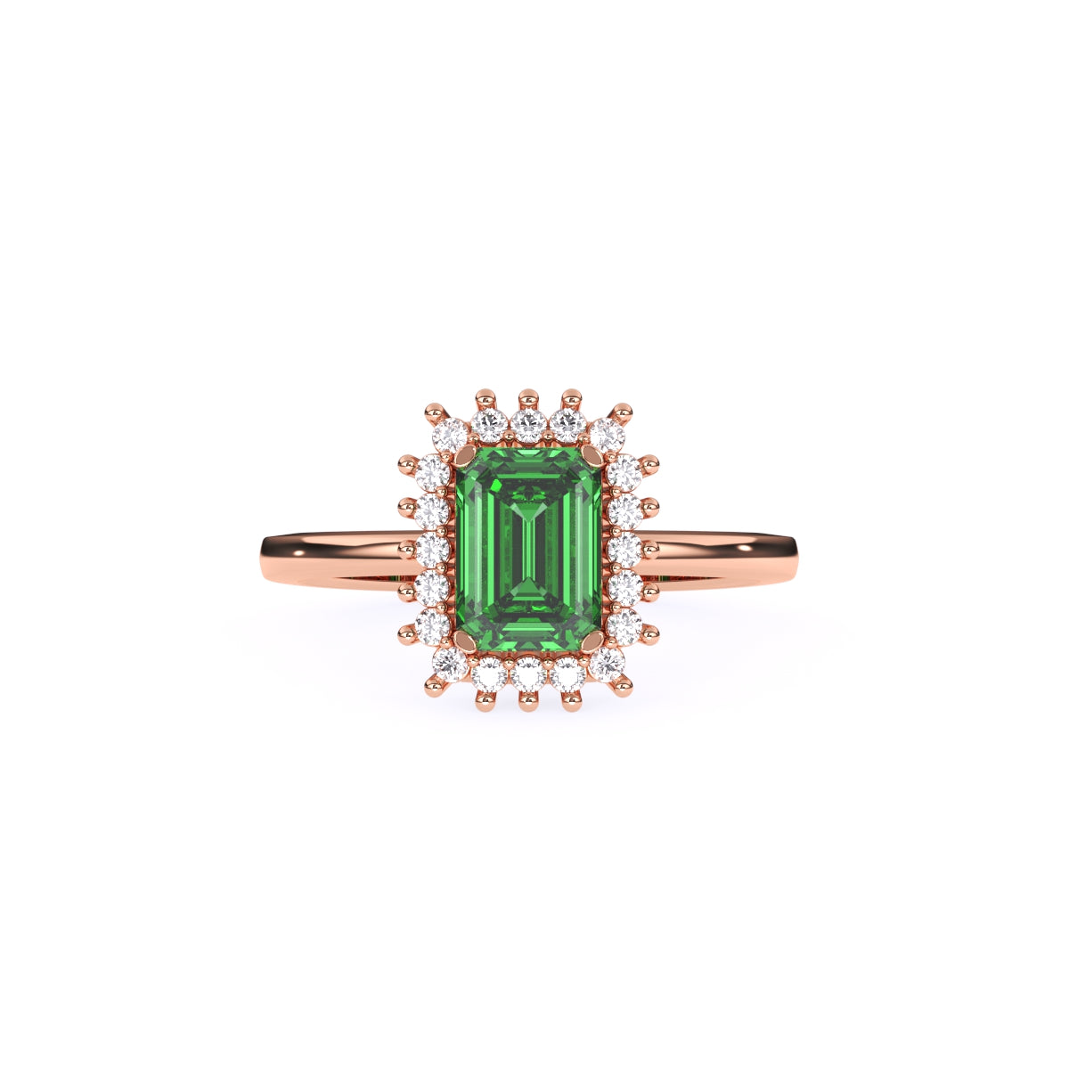 1 StoneA modern statement with a refined edge, this emerald-cut green centre stone is framed by a sparkling halo of round lab-grown diamonds for a clean, architectural glow. Set with lab-grown diamonds in solid 9K/14K/18K yellow, white and rose gold, it’s designed for modern women who love bold colour with everyday elegance—easy to style with workwear, brunch looks, or a sleek date-night outfit. The smooth band sits comfortably on the finger, while the halo adds just the right amount of light-catching brilliance—conflict-free, planet-conscious, and a beautiful modern alternative to mined diamonds.